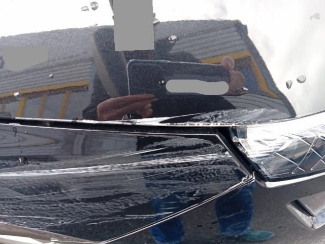 Front rechts eingedrückt. Kotflügel vorne rechts eingedrückt. Motorhaube eingedrückt.