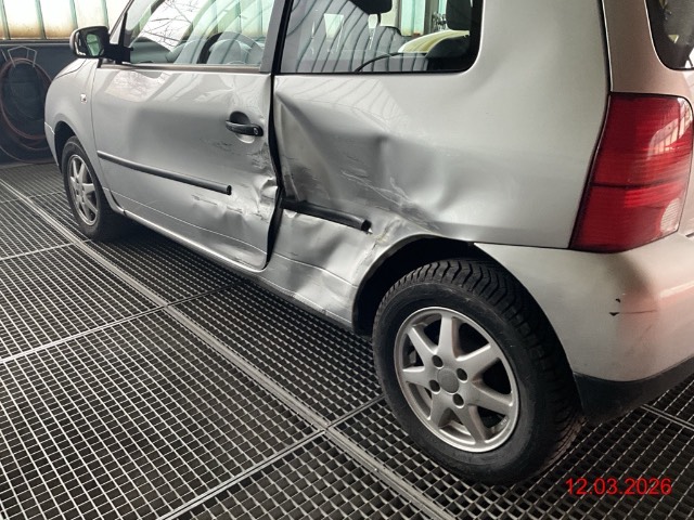 Beschreibung der Schäden: Türe und Seitenwand li stark eingedrückt, Felge hi. rechts beschädigt