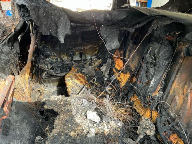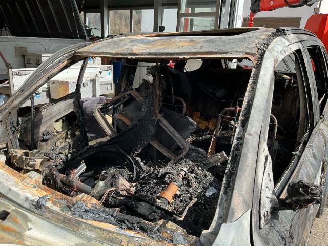 Fahrzeug ist NICHT rollbar. Fahrzeug weist äusserlich Brandspuren auf. Fahrzeug weist im Innenraum Brandspuren auf.