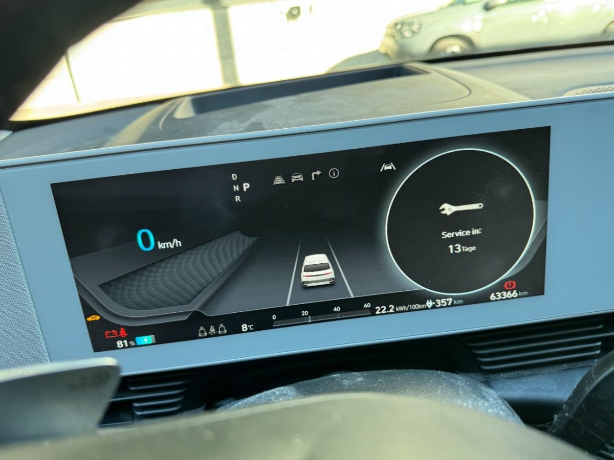 Batterieheizsystem, Ladegerät (On-Board Charger) dreiphasig bis zu 11 kW, Polster: Ledersitze, V2L-Technologie: 230V-Steckdosen innen und aussen (via Adapter), Licht: Fernlichtassistent, Sitze: Sitzheizung hinten, Anfahralarm Vorderfahrzeug, Garantie: Hochvoltbatterie: 8 Jahre / 160 000 km, Heckscheibenheizung, Elektronisches Stabilitätsprogramm ESP mit Multikollisionsbremse, Media: Navigationssystem mit 12.3"-Touchscreen, Assist: Spurfolgeassistent, Elektrisch verstell- und heizbare Aussenspiegel mit integrierten LED-Seitenblinkern, Verschiebbare Mittelkonsole, Media: 2x USB-Anschluss hinten, 44" Augmented Reality Head-up Display, Media: Multi-Bluetooth mit Freisprecheinrichtung, Lenkrad: Wippen am Lenkrad für regeneratives Bremsen, Assist: Autobahn- und Stauassistent, Assist: Spurhalteassistent, Airbag: Deaktivierung Frontairbag Beifahrerseite, Automatisch abblendender Innenspiegel, Lenkrad: Lenkradheizung, Sitze: Elektrisch verstellbarer Fahrersitz, Mittelarmlehne hinten mit Getränkehalter, Licht: Lichtautomatik, Digitale Armaturentafel mit 12.3'' TFT LCD Anzeige, Airbag: Center Airbag vorne, Assist: Aufmerksamkeitsassistent, Media: Premium Audiosystem Bose mit Verstärker, Subwoofer und Center-Speaker, Wärmepumpe, Media: 3x USB-Anschluss vorne, Media: Android Auto - und Apple CarPlay -Funktion, Assist: Tempomat mit Geschwindigkeitsbegrenzer, Wärmedämmende Frontscheibe, Elektrische Heckklappe, Licht: LED-Tagfahrlicht, Sitze: Lendenwirbelstütze Fahrersitz, pneumatisch einstellbar, ABS mit elektronischer Bremskraftverteilung EBD, 12 Volt-Steckdose im Laderaum, Sitze: Vordersitze mit Relax- und Memory-Funktion, Servolenkung, Media: Digitalradio DAB+, Media: Kabelloses Ladesystem für mobile Endgeräte, Ambientebeleuchtung, Assist: Aktiver Totwinkelassistent, ICCB-Ladekabel mit Typ 12-Stecker, Licht: LED-Leuchtband vorne, Räder: 19'' Leichtmetallfelgen 235/55R19, 7,5x19J, Assist: Verkehrszeichenerkennung mit automatischer Geschwindigkeitsregelung, Räder: Reifendruck-Kontrollsystem High Line, Assist: Videoübertragung des toten Winkels bei Richtungsanzeige, Privacy Glass, abgedunkeltes Scheibenglas hinten (ab B-Säule), 12-Volt-Steckdose vorne, Gepäckraumrollo, Sitze: Sitzbelüftung vorne, Automatisch ausklappende Türgriffe, Aussenspiegel und Türgriffe in Wagenfarbe, Virtuelles Motorengeräusch VESS, Gepäcktrennnetz, Gepäckraumbeleuchtung vorne und hinten, Sonnenschutzrollo für Fenster 2. Sitzreihe, Assist: 360° Rundumsichtkamera, Sitze: Rücksitze getrennt abklappbar und elektrisch verschiebbar (60/40), ISOFIX Kindersitzvorrichtung, Allradantrieb permanent, Airbag: Front- und Seitenairbags vorne, Lenkrad: Lederlenkrad längs- und höhenverstellbar, Lackierung: Pearl-Lackierung Lucid Blue, Panorama-Dach, Sitze: Lendenwirbelstütze Beifahrersitz, pneumatisch einstellbar, Schnellladeanschluss CCS bis zu 350 kW, Garantie: Garantie 12 Jahre gegen Durchrostung, Licht: LED-Scheinwerfer im Pixel-Design, Licht: Nebelschlussleuchte, Klima: 2-Zonen-Klimaautomatik mit Anti-Beschlagsystem, Licht: LED-Rückleuchten im Pixel-Design, Sitze: Sitzheizung vorne, Media: 8 Lautsprecher, Räder: Reifenreparatur-Set, Haifischantenne, Assist: Rückfahrkamera mit digitalem Rückspiegel, Assist: Ausstiegsassistent, Assist: Regensensor, Assist: Elektrische Parkbremse mit Auto-Hold-Funktion, Assist: Notbremsassistent mit Fussgänger-/Fahrraderkennung und Abbiegefunktion, Vorbereitung für Anhängevorrichtung (ohne 13-polige Steckdose), Sitze: Höhenverstellbare Vordersitze, Fensterheber vorne mit Auf-/Abwärtsautomatik und Einklemmschutz, Wegfahrsperre elektronisch, Insassenalarm, Akustik-Verbundglas vorne und hinten, Assist: Berganfahrhilfe, Media: MapCare Lifetime - lebenslange Updates (exkl. Arbeitsleistung), Assist: Einparkhilfe vorne und hinten, Licht: Drittes Bremslicht, Assist: Querverkehrswarner hinten mit Bremsassistent, Media: Audio-Fernbedienung am Lenkrad, Airbag: Vorhangairbags vorne und hinten, Drive Mode Select, Akustik-Frontscheibe, Dreipunkt-Sicherheitsgurte auf allen Plätzen, vorne höhenverstellbar, Assist: Automatisches Notrufsystem eCall, Assist: Navigationsbasierter adaptiver Tempomat mit Stop&Go-Funktion, Getriebe: 1-Gang Getriebe, Alu-Pedale, Hochvoltbatterie mit 800 V-Technologie (400 V-kompatibel), Fensterheber vorne und hinten elektrisch, Schlüsselloses Zugangs- und Startsystem Smart Key, Media: Telematikdienst Bluelink und LIVE Services (3 Jahre gratis), Sitze: Elektrisch verstellbarer Beifahrersitz