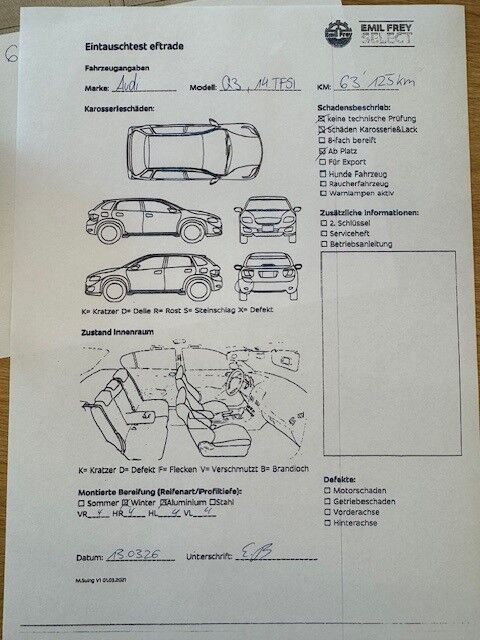 Keine technische Prüfung (Werkstatttest) vorgenommen Diverse Schäden an Karosserie/Lack. Fahrzeug ab Platz, ohne Garantie und Aufbereitung. Motor Getriebe Vorderachse Hinterachse Airbags ausgelöst: 0 unbekannt ( Abfallcode 16.01.04ak )