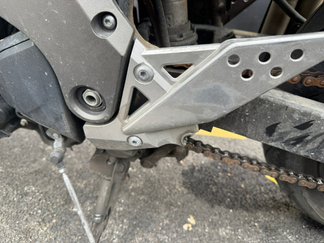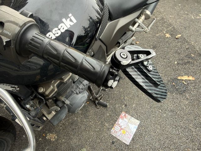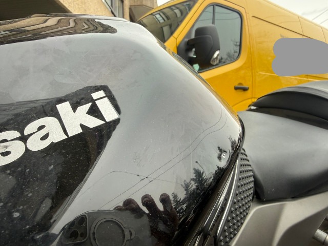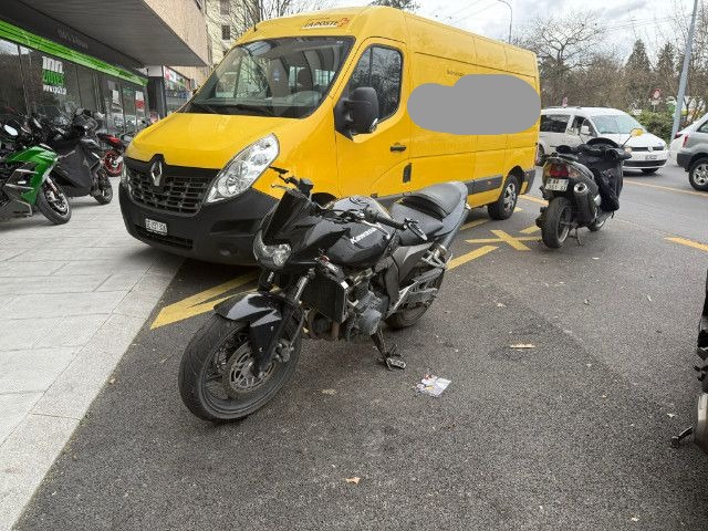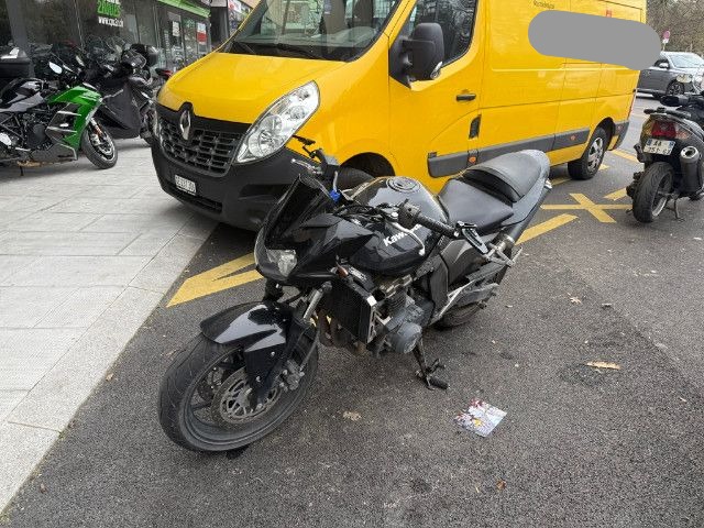 Lenker, linker Hebel, linker Rückspiegel, linke Verkleidung, Tank, hintere Verkleidung, linke Fußraste, Halterung der linken Fußraste vorne und hinten, Tank beschädigt.
