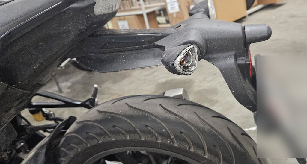 Rückspiegel re. und li., Lenkergewicht re. + li., Bremshebel VR, Kupplungshebel, Lenker, Motorverkleidung VR, Gabelholmen VR, Seitenverkleidung VR + VL, Kopfverschalung, Schutzblech vorne, Schalthebel und Fussraster, Raster HL, Blinker HL, Heck nach links verschoben, Verkleidung am Tank link, Auspuffendtopf, Fussraster VR, ... Motor Getriebe Vorderachse Hinterachse Airbags ausgelöst: 0 unbekannt ( Abfallcode 16.01.04ak )