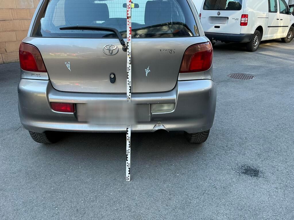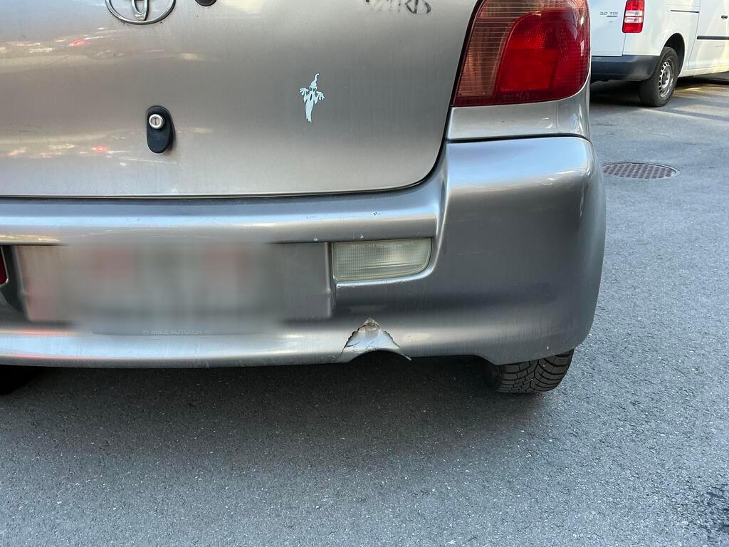 Collision arrière Pare-chocs arrière cassé. Silencieux d'échappement endommagé