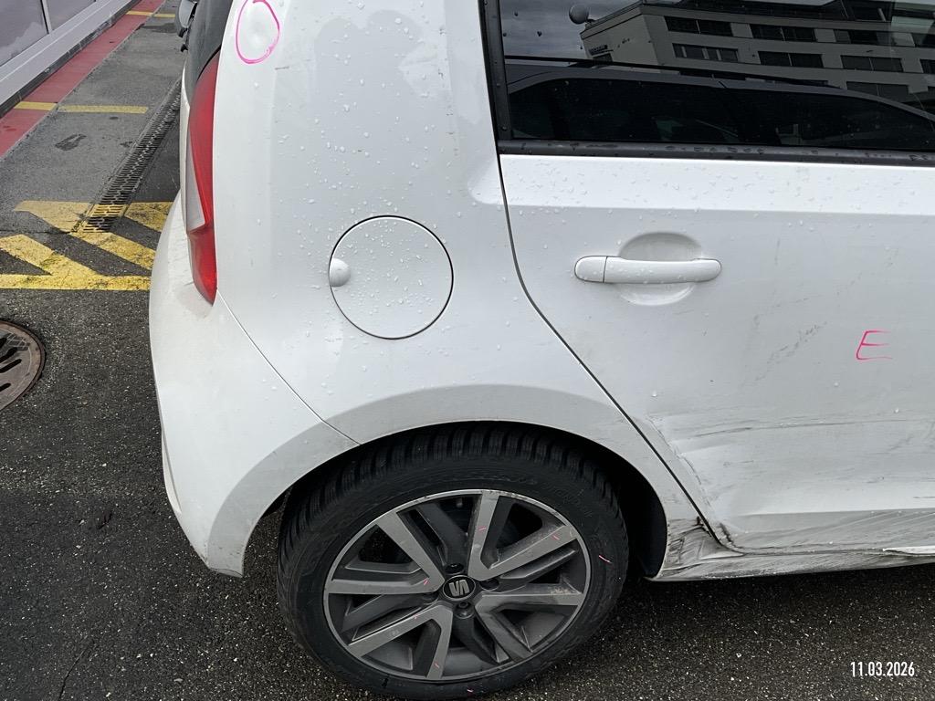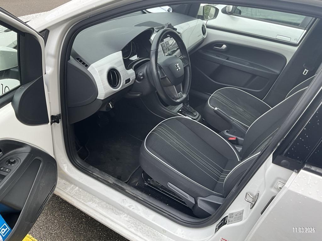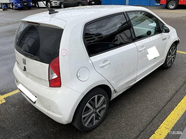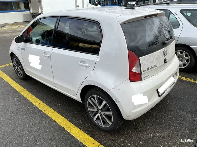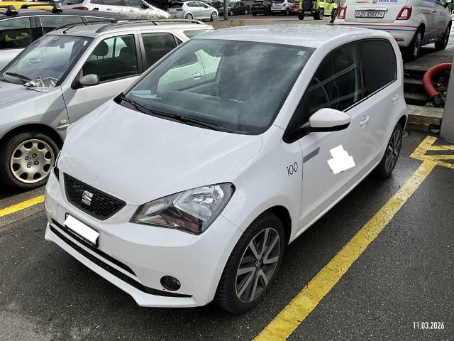 Media: Smartphone-Integration mit Halterung und Navigationssystem (DriveMii-App), Polster: Stoff-Ausstattung, Sitze: Abklappbare Rücksitzbank (60/40), Aussenspiegel rechts und links beheizbar und elektrisch verstellbar, SEAT Garantie: Garantie Batterie-Gewährleistung 8 Jahre oder 160'000 KM auf 70% Batterieleistung (ab 1. Inv.), Sonnenblende Fahrer und Beifahrerseite mit Spiegel, Sitze: Sitzheizung für Vordersitze, getrennt regelbar, Räder: Leichtmetallräder 6J x 16", "Cosmo Grey" 185/50 R16, Licht: Tagfahrlicht, Antiblockiersystem (ABS), Elektronisches Stabilitäts-Programm (ESP), Pollenfilter (Staubfilter), Servolenkung, Lenkrad: Lederlenkrad, SEAT Garantie: Garantie 2 Jahre ohne Kilometerbe-grenzung (ab 1. Inv.), Abgedunkeltes Scheibenglas (ab B-Säule), Getriebe: 1-Gang Getriebe automatik, Media: 5'' Farbdisplay, Schalthebelknauf in Leder, Airbag: Fahrer und Beifahrer Airbag, Warnton und -leuchte für nicht angelegte Sicherheitsgurte, Media: DAB-Radio (Digital Audio Broadcasting), Räder: Reifenreparatur-Set (Tire Fit), Räder: Reifendruckkontrollsystem, Media: Online Dienste, Licht: Nebelschlussleuchte, SEAT Garantie: Garantie 12 Jahre Gewährleistung gegen Karosserie-Durchrostung, Kabel für Wechselstrom-Ladestation, Licht: Halogenscheinwerfer, Assist: Berganfahrhilfe (Hill Holder), Tageskilometerzähler, ISOFIX Kindersitzvorrichtung, Media: Bluetooth Freisprecheinrichtung, 3-Punkt-Sicherheitsgurte auf allen Plätzen, Sitze: Kopfstützen vorne und hinten, Assist: Spurhalteassistent Lane Assist, Frontscheibenheizung, Zentralverriegelung mit Fernbedienung, Heckscheibenheizung, Gleichstrom-Ladedose (Fast Charge), Bordcomputer und Display, Handschuhfach, Media: USB-Anschluss, Dashboard in grau, Sitze: Fahrersitz höhenverstellbar, Heckscheiben-Wisch-/Waschanlage, SEAT Garantie: Garantie 3 Jahre Lack-Gewährleistung, Wärmeschutzverglasung, Airbag: Beifahrerairbag deaktivierbar, Airbag: Seitenairbags und Kopfairbags vorne, Aussenspiegel und Türgriffe in Wagenfarbe, Karosserie teilverzinkt, Media: Lautsprecher 6, Gurtkontrolle, Scheibenbremsen vorne, innenbelüftet, Assist: Licht- und Regensensor, Klima: Climatronic, Licht: Nebelscheinwerfer, Lenkrad: höhenverstellbar, Wegfahrsperre elektronisch, Elektrische Fensterheber vorne