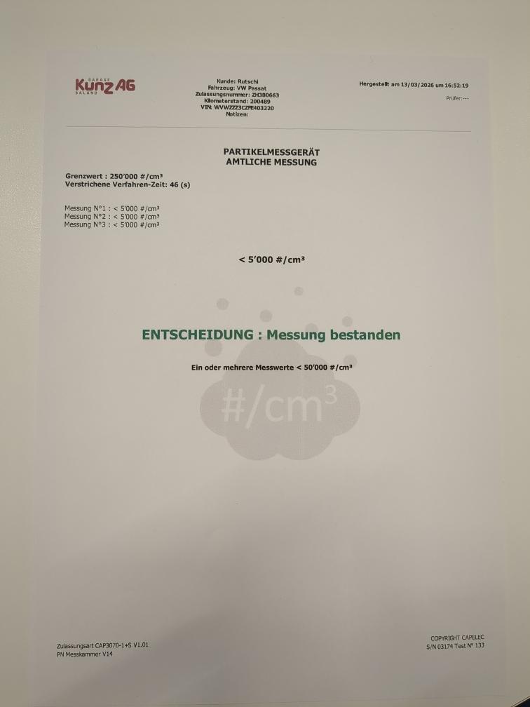 Dieselpartikelfiltertest wurde erfolgreich durchgeführt (Schriftlicher Ausdruck ist vorhanden).