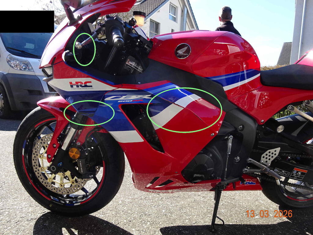 Léger dommage esthétique : la moto est tombée à très basse vitesse, ce qui a provoqué des rayures sur le côté gauche. Elle est ensuite tombée sur le côté droit à l¿arrêt, entraînant des rayures sur le côté droit. Motor Getriebe Vorderachse Hinterachse Airbags ausgelöst: 0 unbekannt ( Abfallcode 16.01.04ak )