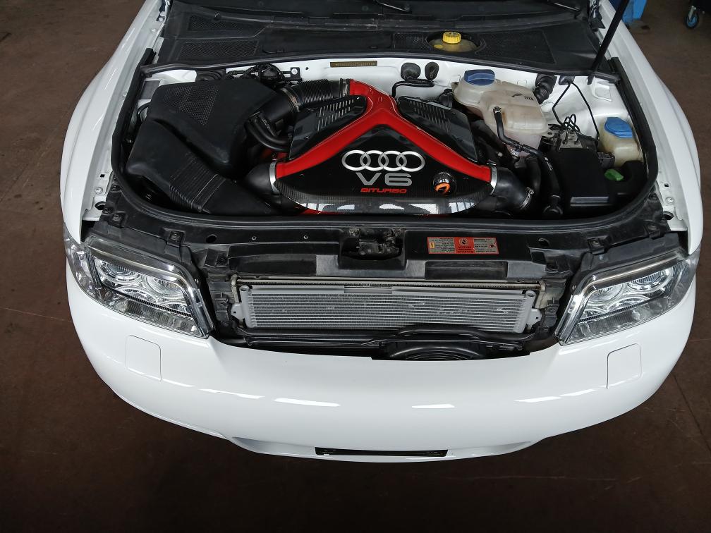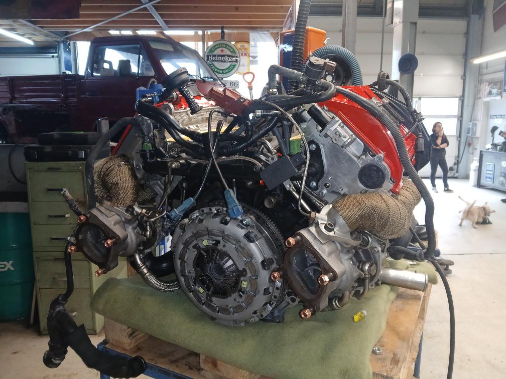 Rumpfmotor ist vom Audi S4 alle Anbauteile RS4, Viele Neuteile wie Turbolader, Abgaskrümmer, Pleuel, Motorlagerschalen. Sekundärluftsystem ist aus Codiert. Wagner LLK, Saugerköpfe mit Nockenwellen, Neue Kupplung mit Schwungrad verstärkt. ( Leistung nicht eingetragen ) anhand der Anbauteile sollte er über 500PS haben. Bremsen vorne und hinten Neu, Felgen wie Reifen Neu, Zahnriemen und WP ersetzt. Alle Querlenker voren ersetzt. Original Farbe Silber. Verkauf ab Platz ohne Garantie