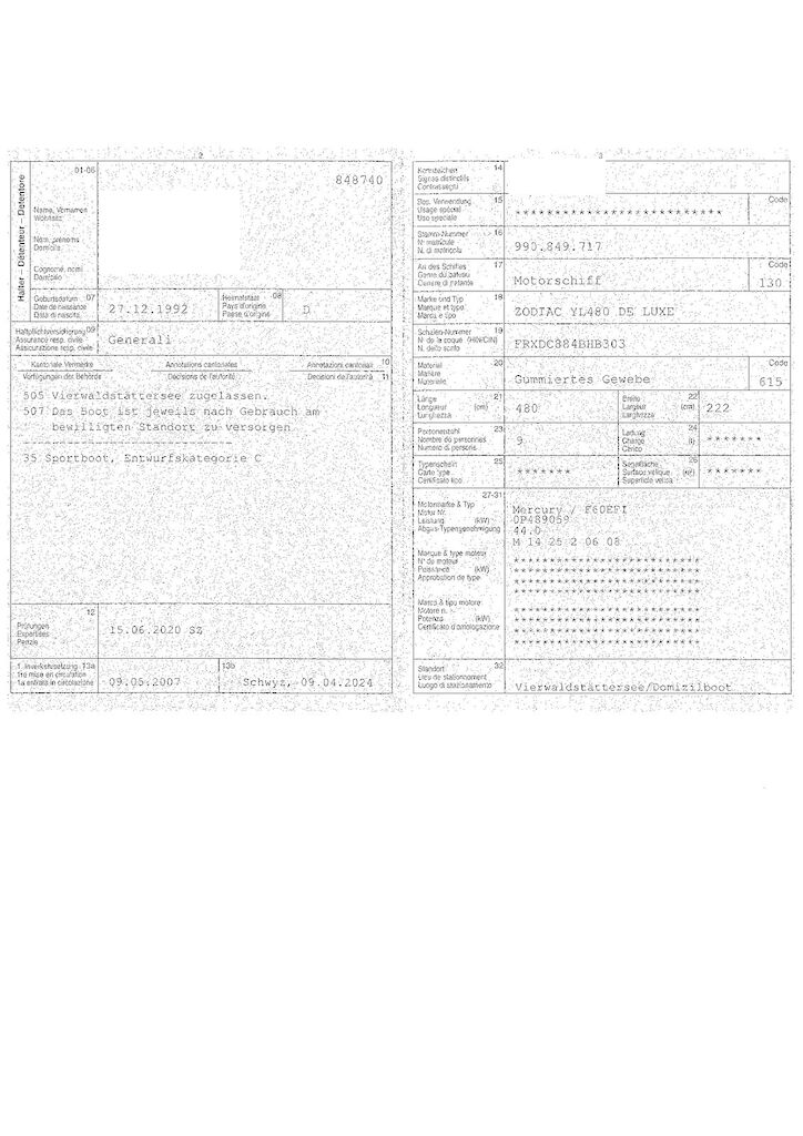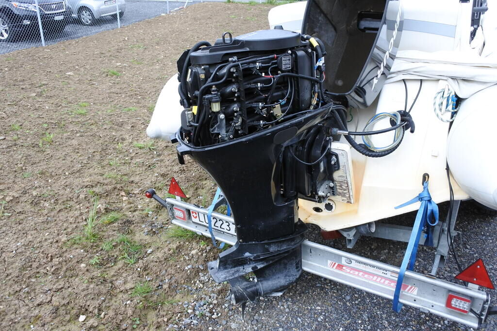 Der Rumpf ist an verschieden Stellen beschädigt und undicht. Der Kiehl ist auf der hinteren Hälfte mit einem durchgehenden Riss versehen. Der Motor läuft nicht und die Finne ist abgebrochen. Die Kombiinstrumente sind beschädigt. Weitere Schäden gehen aus den Fotos hervor. Das Boot wird voraussichtlich ohne Trailer, Schwimmwesten usw. in die Verwertung kommen. Motor Getriebe Vorderachse Hinterachse Airbags ausgelöst: 0 unbekannt ( Abfallcode 16.01.04ak )