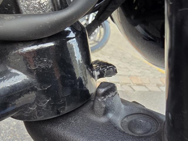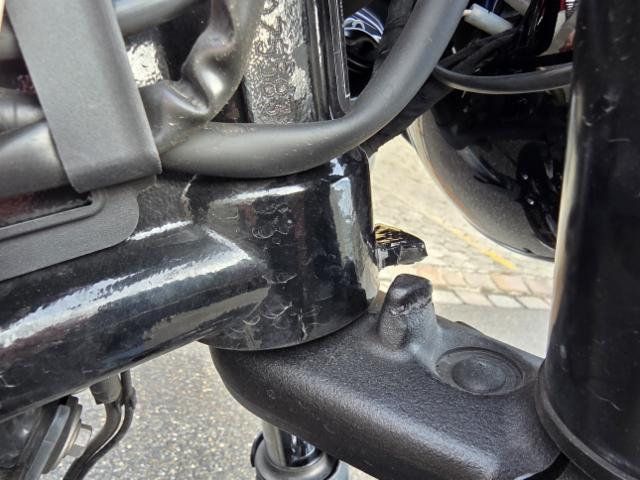 Schutzblech vorne defekt. Vorderrad beschädigt. Gabel beschädigt. Lenker verbogen.