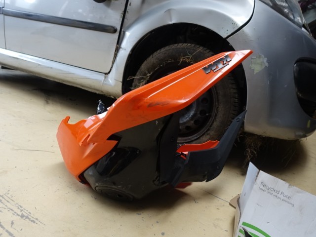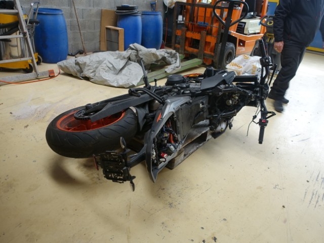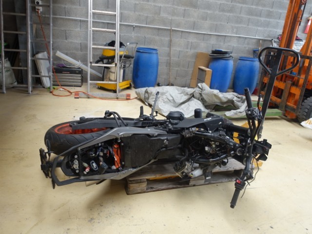 Felge + Reifen vorne — Vorderlager — Gabel vorne komplett — Lenker — Scheinwerfer vorne — Frontverkleidungen — Kühler — Auspuff — Tank — Verkleidungen hinten links + rechts. !!!!! Motorreserve !!!!