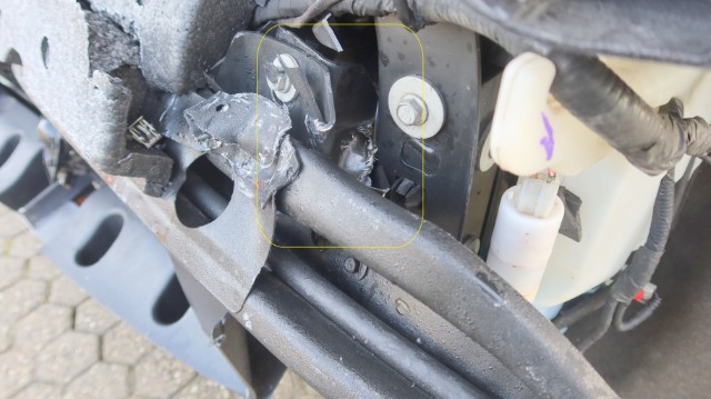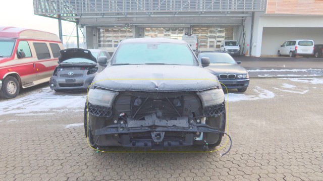 Beschädigung Stossstangenabdeckung vorne gerissen, Kühlergrill und Gitter unten gebrochen, Scheinwerfer links und rechts gebrochen, Nebellampe vorne links und rechts gebrochen, Querträger eingedrückt, Schlossträger deformiert, Kühlerpaket verformt und beschädigt, Kühlerlüfter gebrochen, Verstrebungen vorne deformiert, Längsträger links und rechts gestaucht, Radarsensor vorne gebrochen, Diverse Abdeckungen und Luftführungen vorne gerissen und beschädigt, Motorhaube gestaucht Die Front wurde bis zum Motor eingedrückt, weitere Beschädigungen am Motor sind nicht ausgeschlossen!