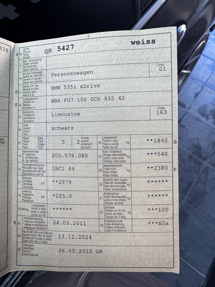 BMW 535i xDrive - Jg 2011 - Km 155‘000 - Servicegepflegt (alle bei der BMW Garage) - Sitzheizung - Top Ausstattung - Schiebedach - Tempomat - Navi - 8fach bereift - Tiefergelegt (eingetragen) - Felgen (eingetragen) - Hecklippe (eingetragen)