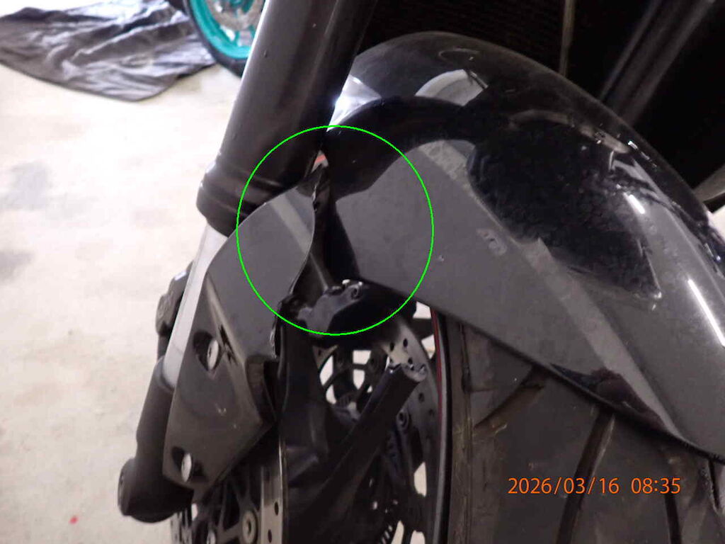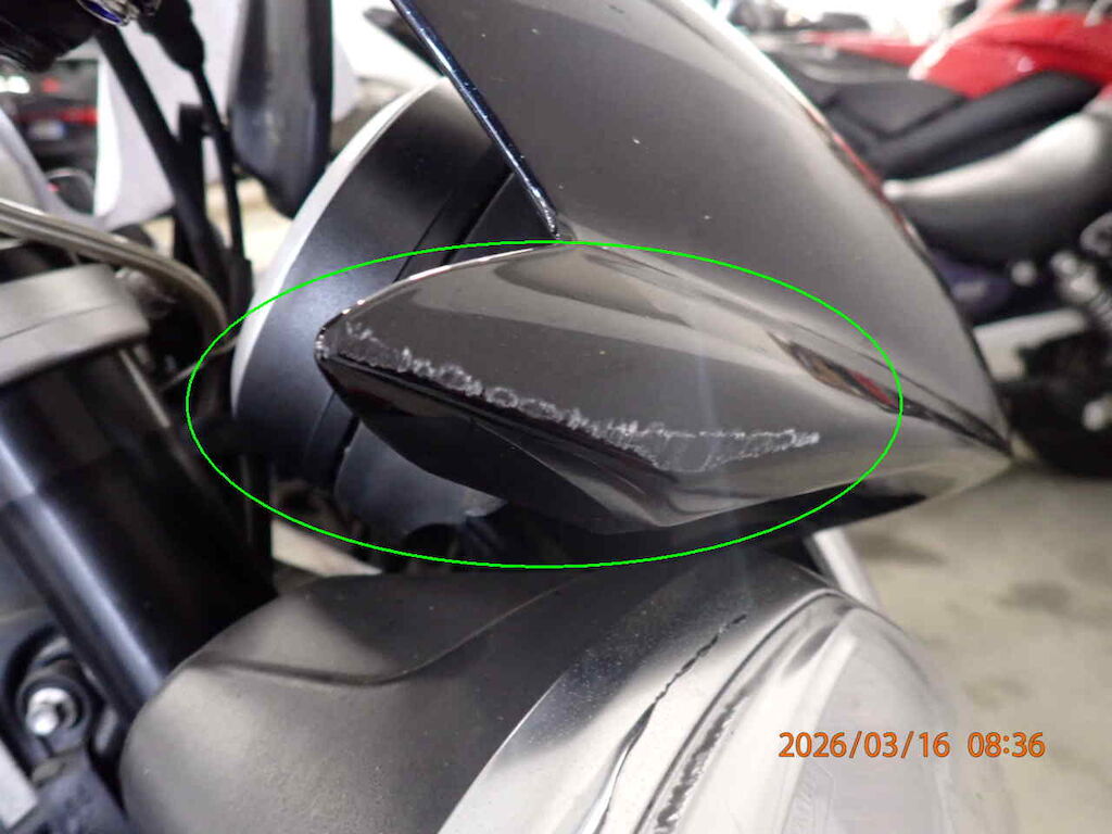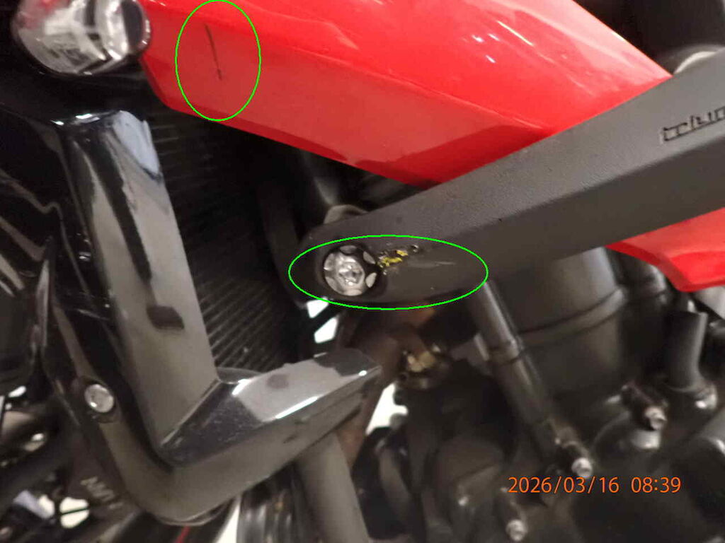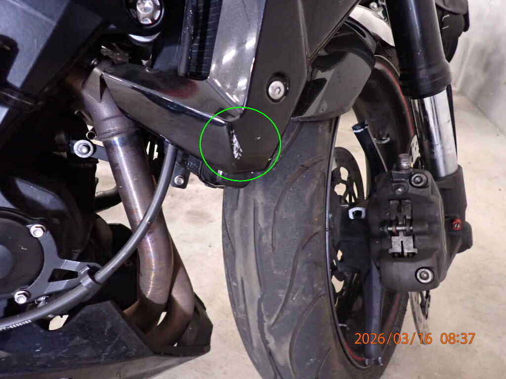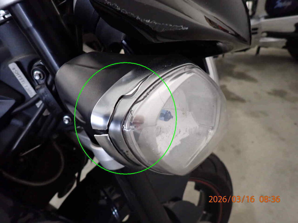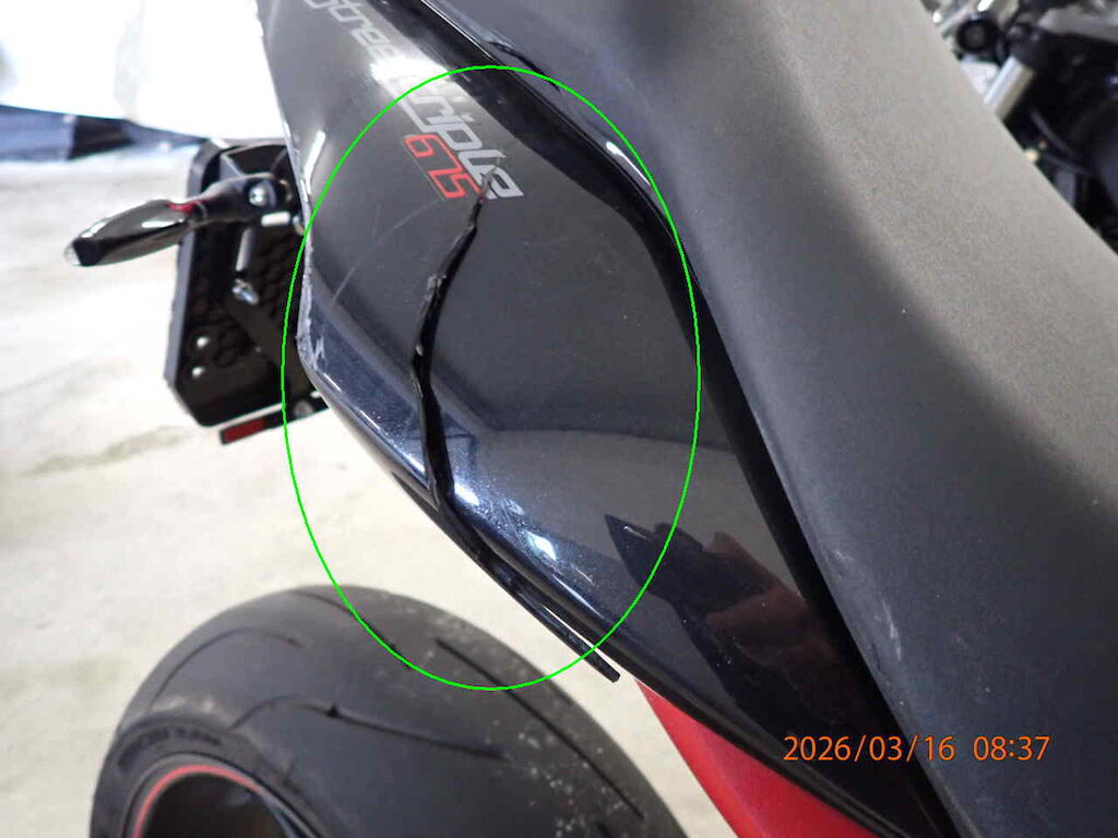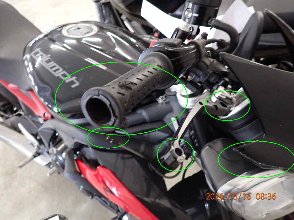 Vorderrad bebrochen Gabelbeschädigt, Scheinwerfer rechts, Abdeckung vorne, Bremshebel rechts, Griff rechts Auspuff, Abdeckung hinten, Abdeckung vorne links beschädigt Motor Getriebe Vorderachse Hinterachse Airbags ausgelöst: 0 unbekannt ( Abfallcode 16.01.04ak )