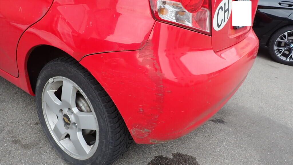 préexistant aile arrière et pare-chocs arrière gauche enfoncées, éraflées