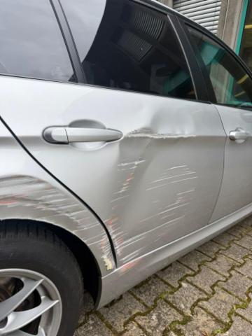 Rechte Seite beschädigt. Schweller rechts ist eingedrückt. Tür hinten rechts ist eingedrückt.