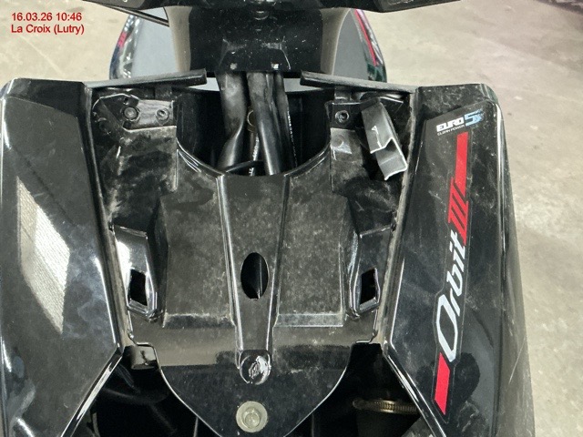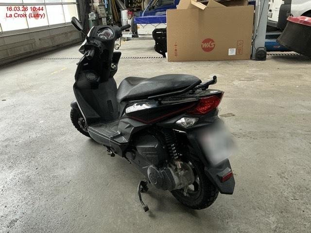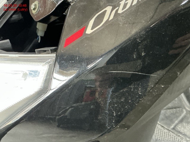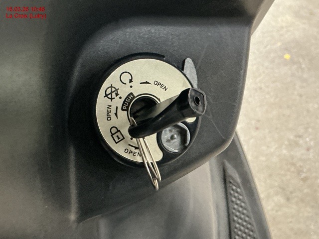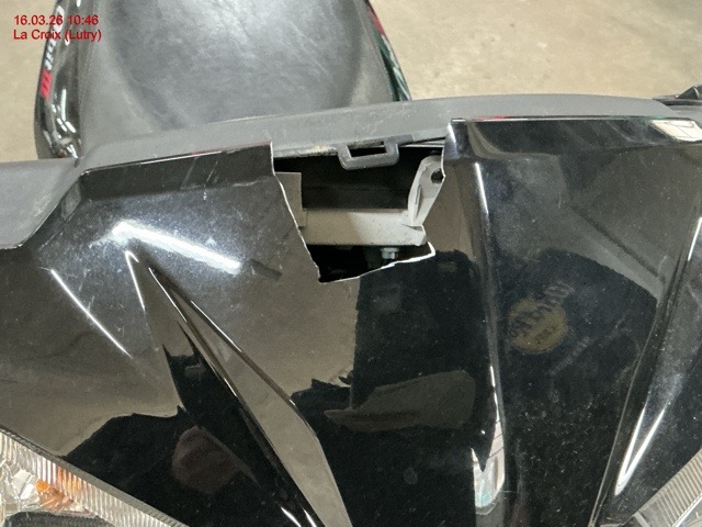 Serrure de contact, antivol de direction, potence de direction, compteur, carénage avant et à gauche, rétroviseur, carénage inférieur central, fonctionnement moteur inconnu.