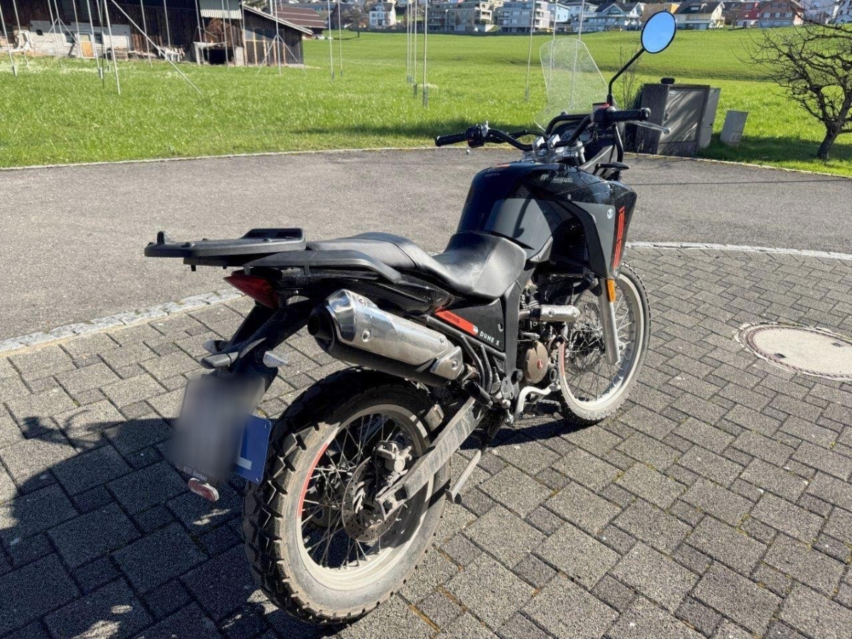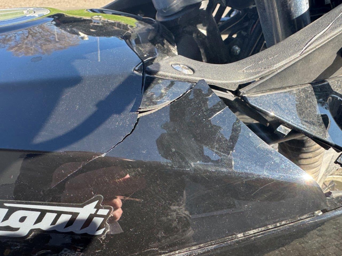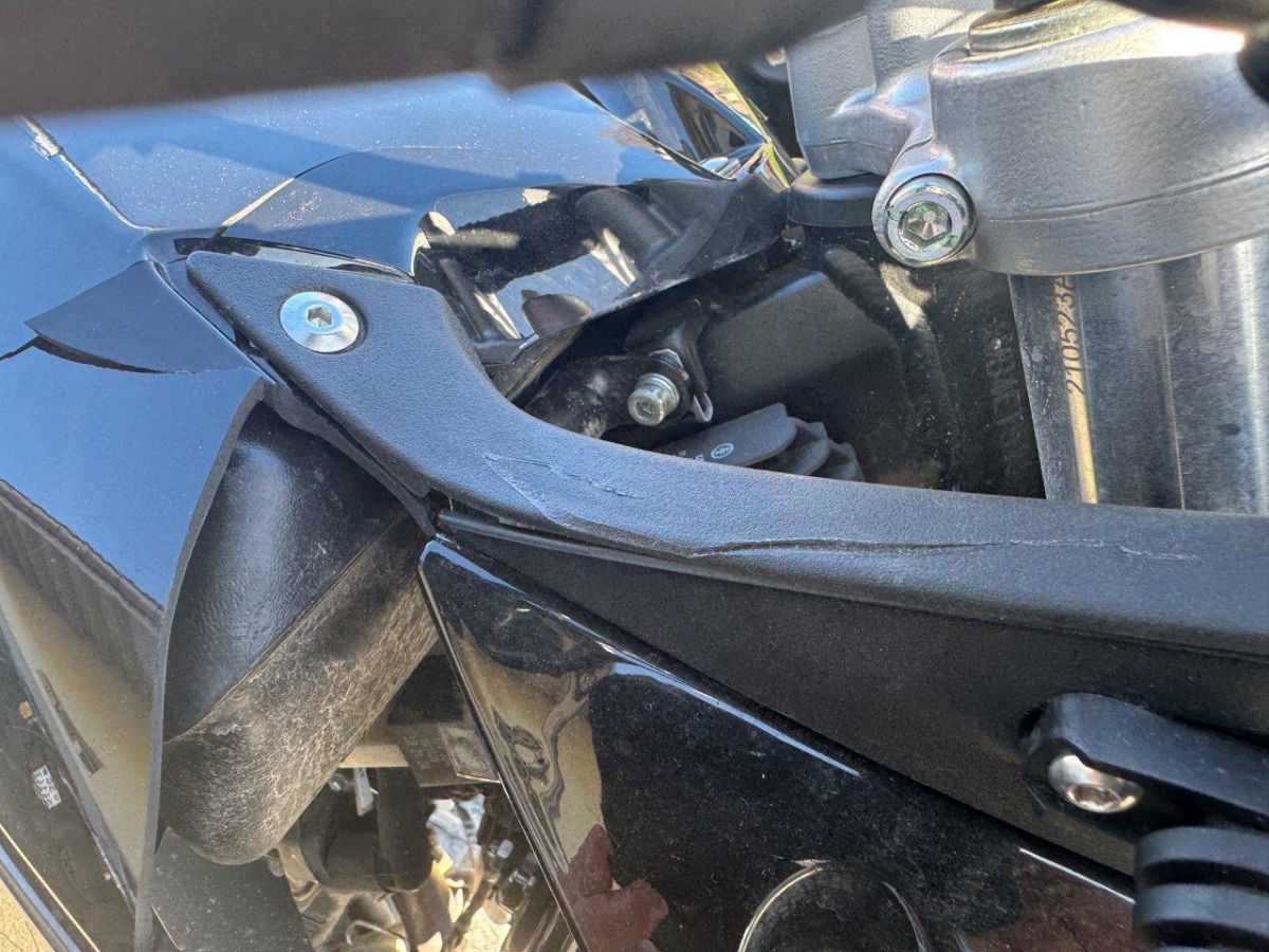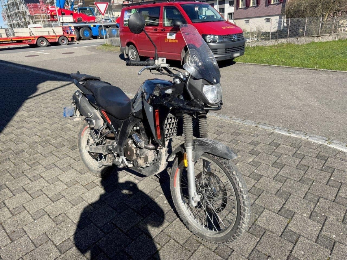 Anprall Front: Dabei wurden die Gabel, das Vorderrad, die Tankverkleidung, der Kühler, der Rahmen, der Vorderradkotflügel, der Lenker, der linke Rückspiegel sowie diverse weitere Anbauteile beschädigt. AUFZÄHLUNG NICHT ABSCHLIESSEND. / Zustand bemäss den Bildern!