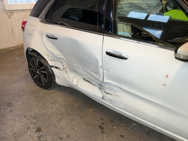 Latéral arrière droit : Portes, rétroviseur, bas de caisse, aile, passage de roue, rétracteurs ceinture av.g. et dr., airbags siège et rideau dr. etc... - liste non exhaustive / Dommages préexistants: Pare-choc avant droit rayé. Pare-choc arrière droit enfoncé et hayon rayé. Pare-choc avant gauche rayé. Peinture mat.