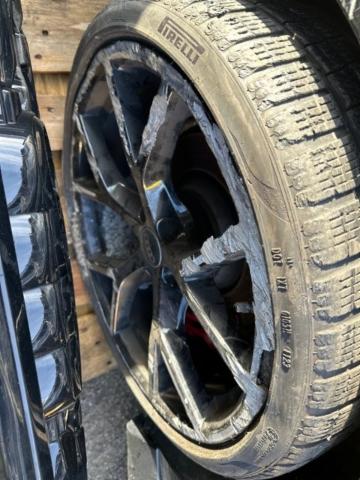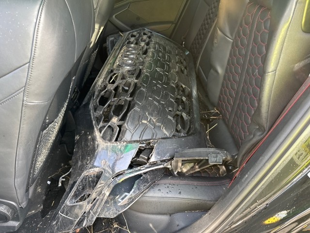 Aufhängungsteile vorne rechts beschädigt. Hinterachse rechts beschädigt.