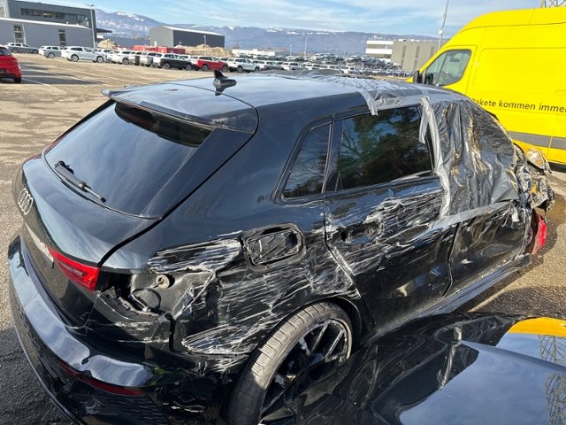 Rechte Seite beschädigt. Anstoss rechts im Bereich der A-Säule.