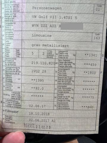 Fahrzeugdokumente vorhanden.