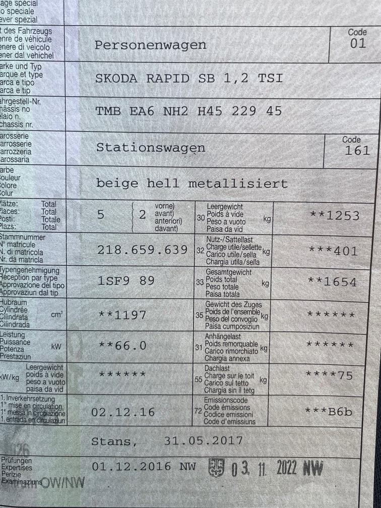 SKODA RAPID SB 1,2 TSI