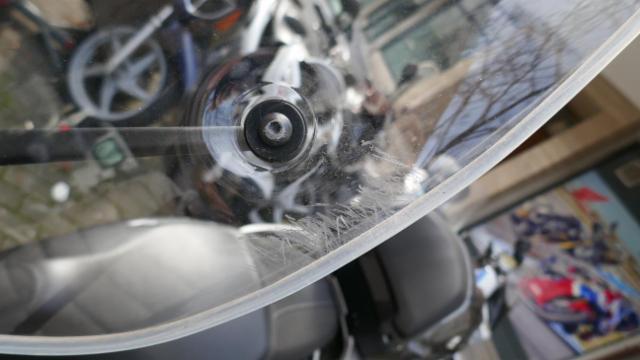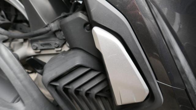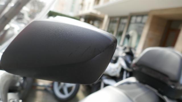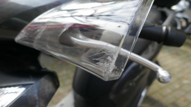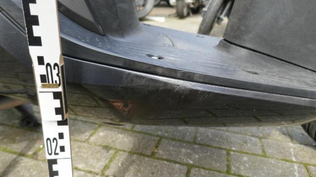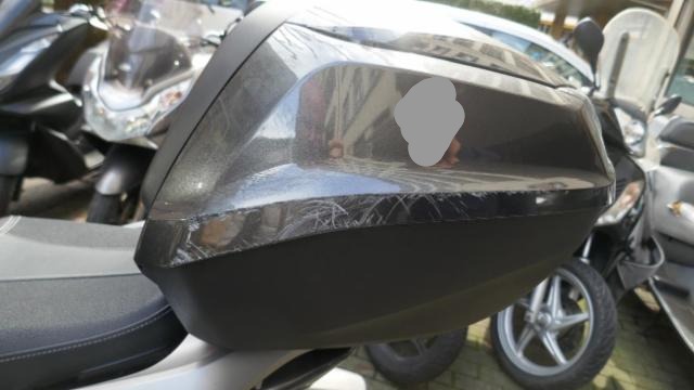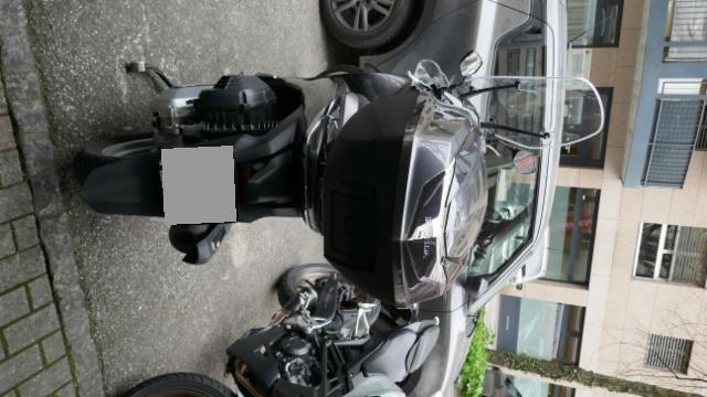 Seitenaufprall rechts und Sturz links: Verkleidung vorne rechts, Unterteil rechts, Fussstufen, Fusskeil, Auspuffschutz, Halter rechts, Lenkerverkleidungen, Lenkerende rechts, Hebel rechts, Seitenspiegel rechts zerkratzt, beschädigt, gebrochen. Kotflügel vorne, Windschutzscheibe, Handschutz links, Hebel links, Lenkerspitze links, Lenker, Frontverkleidung links, Krücken, silber Verkleidung, Topcase zerkratzt, gebrochen, beschädigt. Gefahr an Gabel und Gabel-T-Stück.