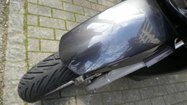 Schutzblech vorne defekt. Gabel Risiko. Lenker verbogen.