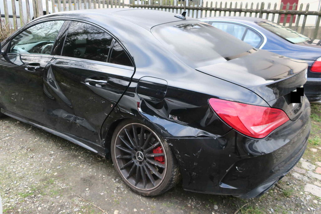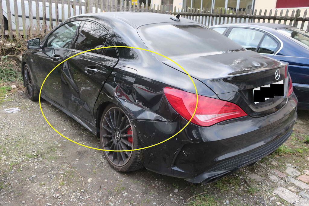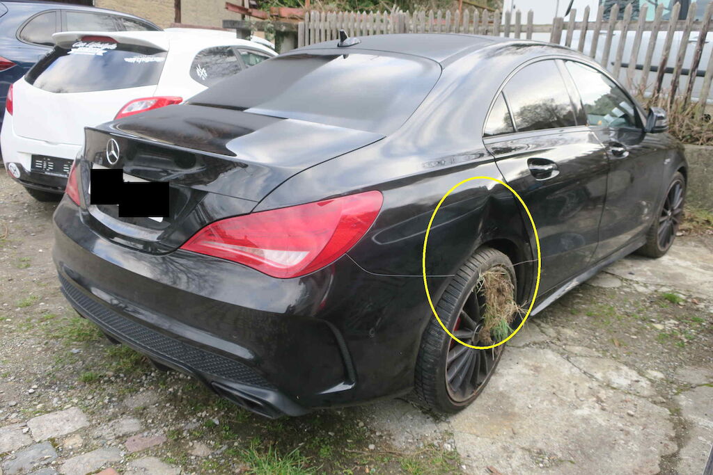Türe, Seitenwand, Stossfänger hi. links inkl. Rad, Radaufhängung hi. links, Seitenwand hi. rechts inkl. Rad. (Risiko Radaufhängung). Motor Getriebe Vorderachse Hinterachse Airbags ausgelöst: 0 unbekannt ( Abfallcode 16.01.04ak )