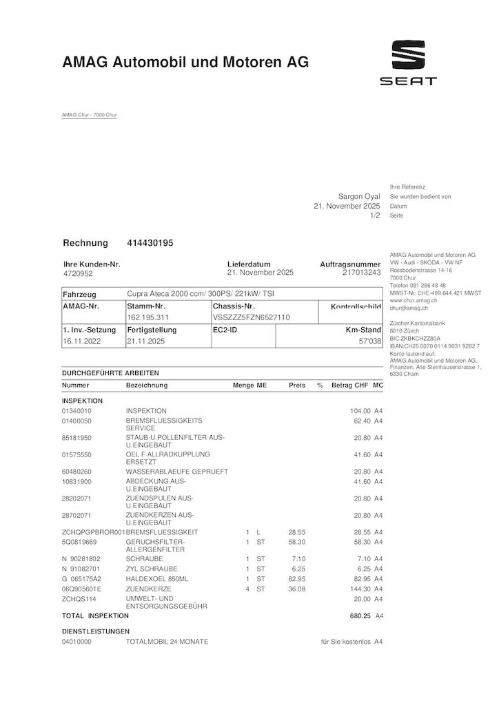 mit Anschlussgarantie bis 04.2027 oder 100'000kmletzter Service mit DSG und Haldex im 12.2025 erledigt