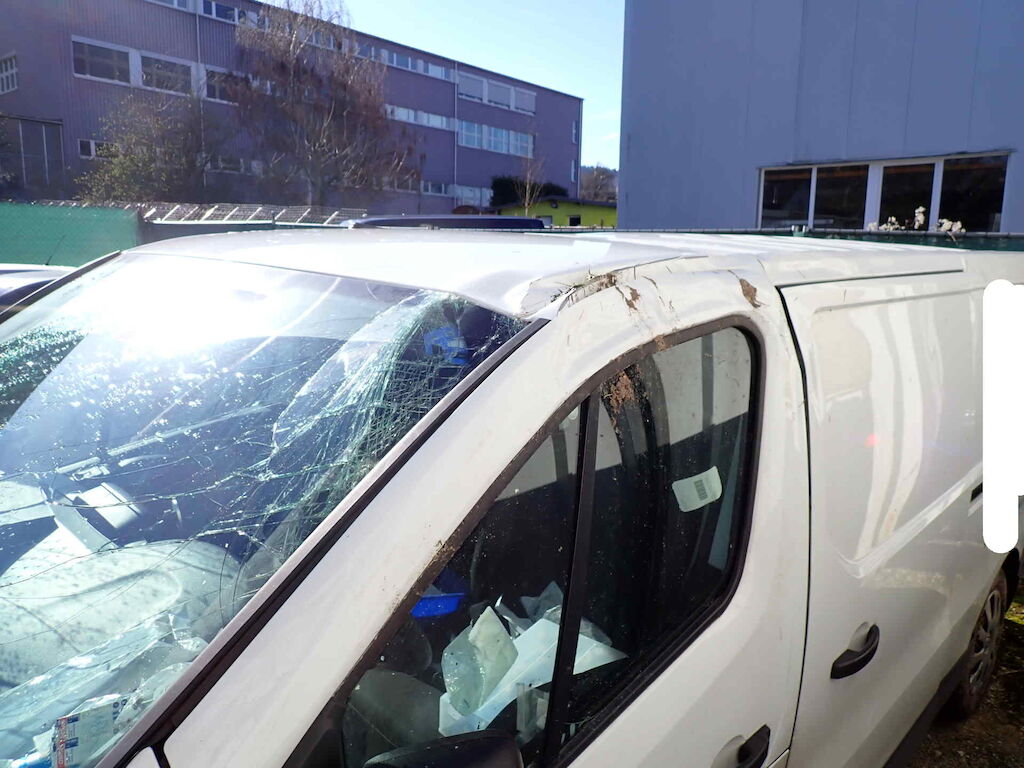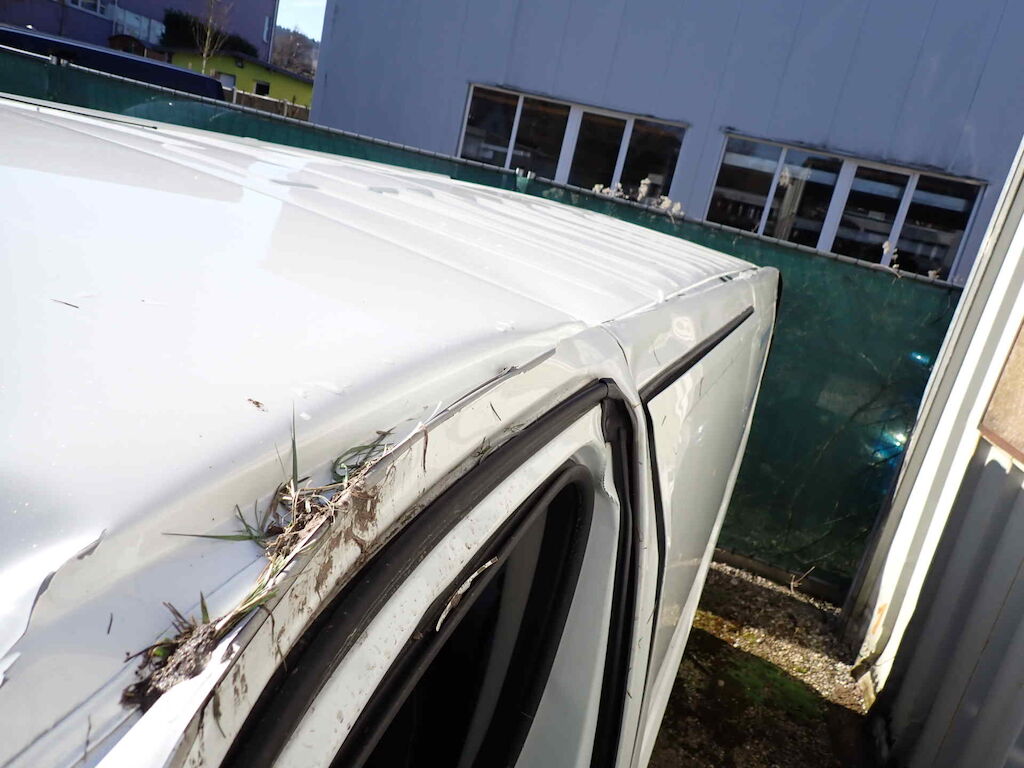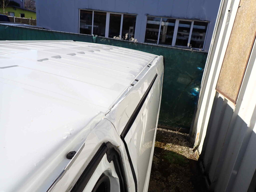 Kollision vorne rechts und links, das Fahrzeug lag auf der linken SeiteOffensichtlicher TotalschadenFirmenbeschriftung muss entfernt und mit Bildern nach der Entfernung dokumentiert werden.Es ist nur die aktuelle Bereifung vorhandenInnenausbau wird noch entfernt.Diverse kleinere Gebrauchsspuren rund um das FahrzeugVorschäden:Sitzpolster FahrerSeitenwand und Schiebetüre hinten rechtsAussenspiegel rechts