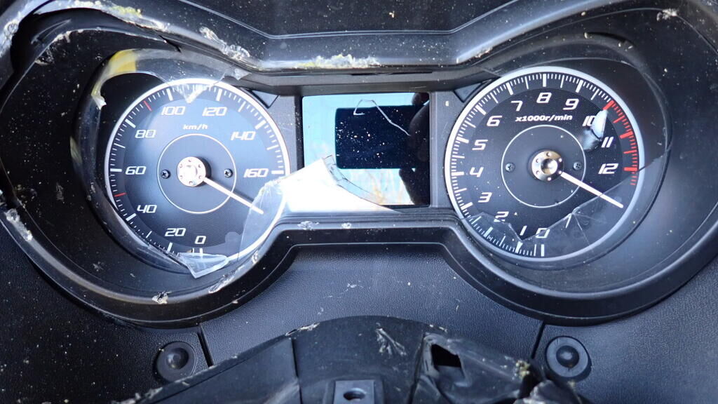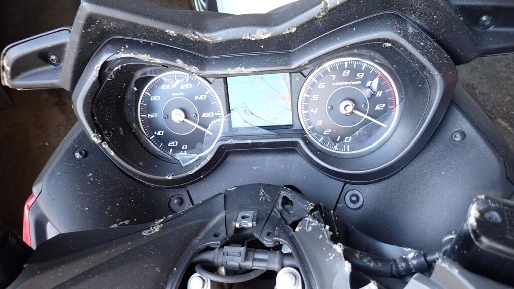 Volé / retrouvé Carénages avant, carénages arrière, carénages latéraux, compteur, échappement, selles, carters, phare avant, poignées, leviers de freins etc... Motor Getriebe Vorderachse Hinterachse Airbags ausgelöst: 0 Ja ( Abfallcode 16.01.04ak )