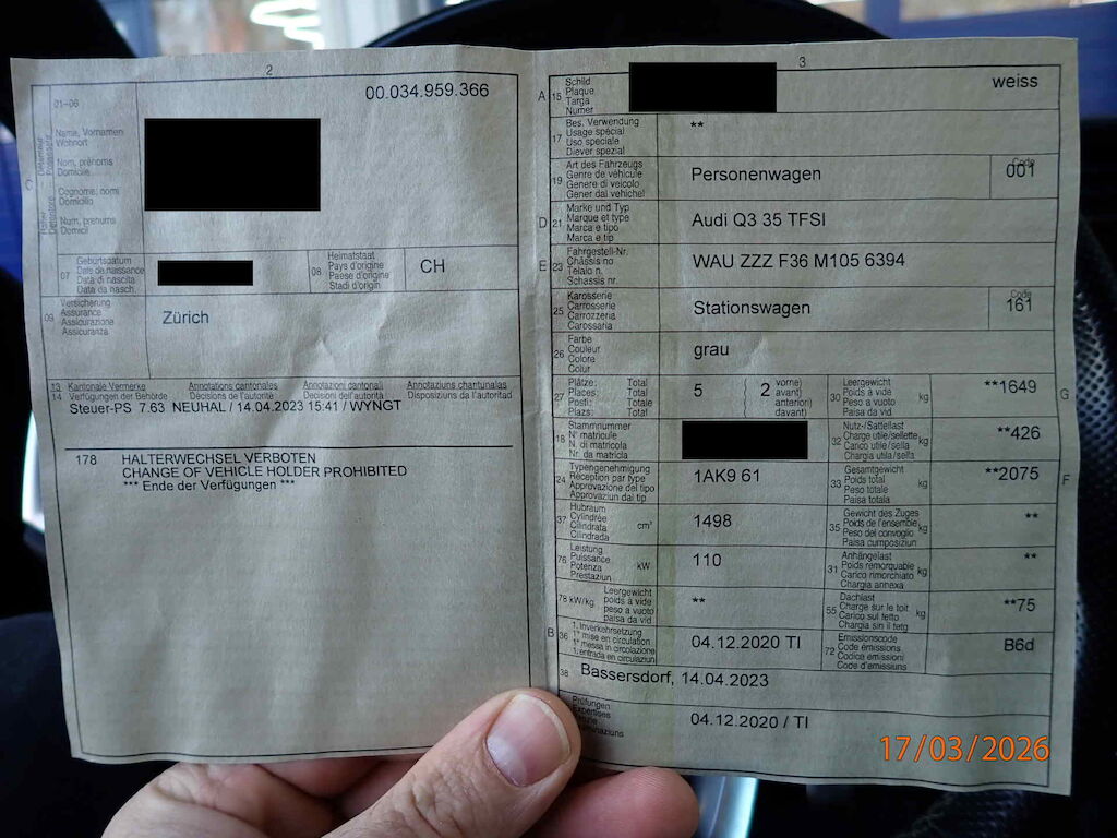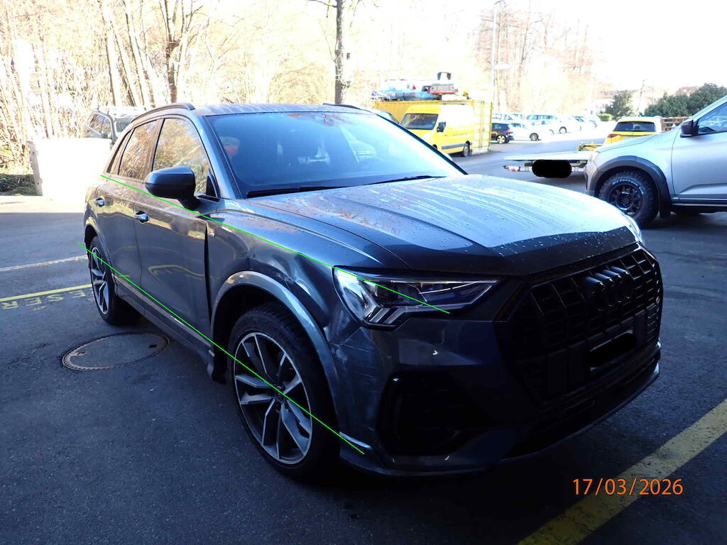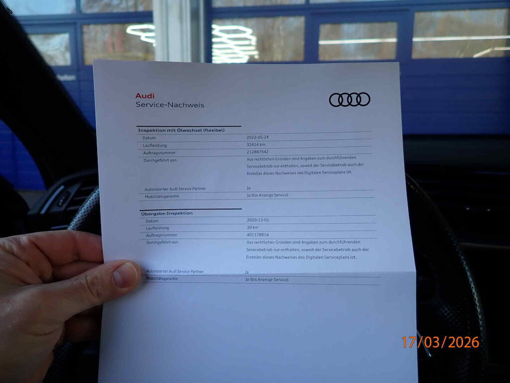 - MFK Dezember `20, CH-Typenschein, Serviceheft und 2. Schlüssel vorhanden.- System mild HEV, Sportfahrwerk, virtual Cockpit, Spurwechselsassistent, Fernlichtassistent, 2-Schicht Perlcolor, Sport Komfortsitze, Sitze V heizbar, Verglasung H dunkel getönt, Multifunktions-Sportlenkrad mit Schaltwippen, Radio DAB, Mittelarmlehene V & H, MMI Navigation plus, optik Paket schwarz- Lenkrad ist schief (Auto kaum fahrbar), Aufhängung konnte nicht geprüft werden.