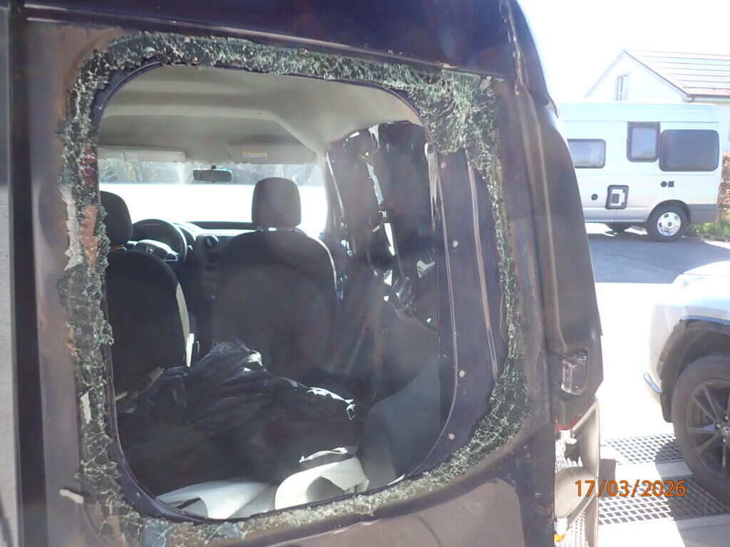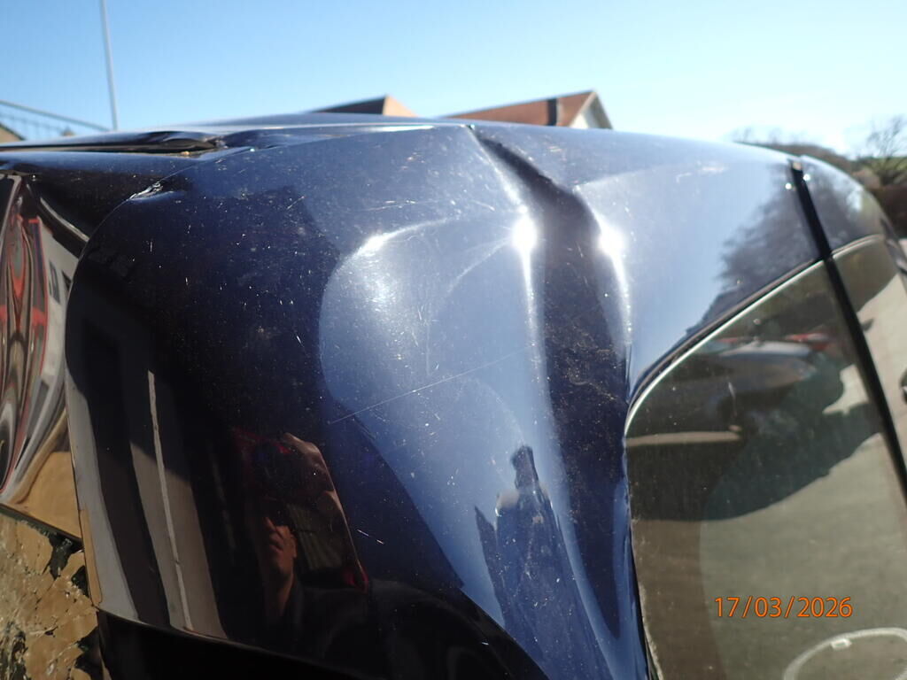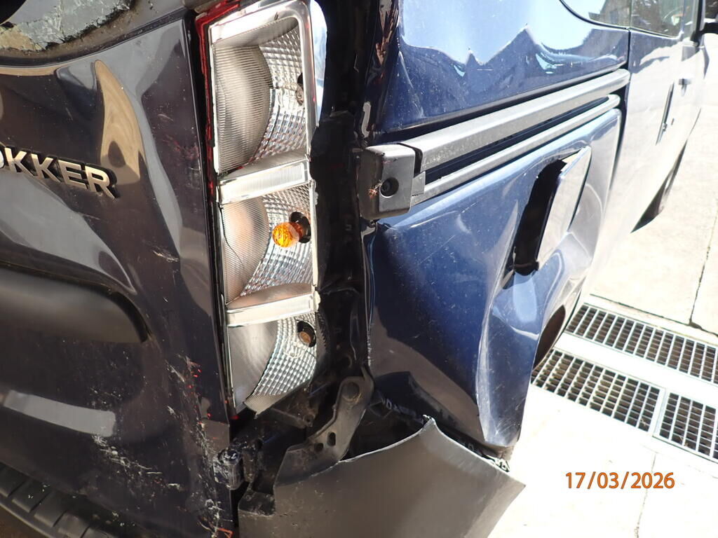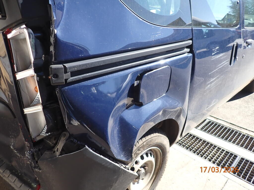 Portes arrière, feu, vitre cassée, pare-chocs arrière, renfort, plancher plié, longeron droit plié, aile arrière, bas de caisse, porte latérale, pavillon Motor Getriebe Vorderachse Hinterachse Airbags ausgelöst: 0 unbekannt ( Abfallcode 16.01.04ak )