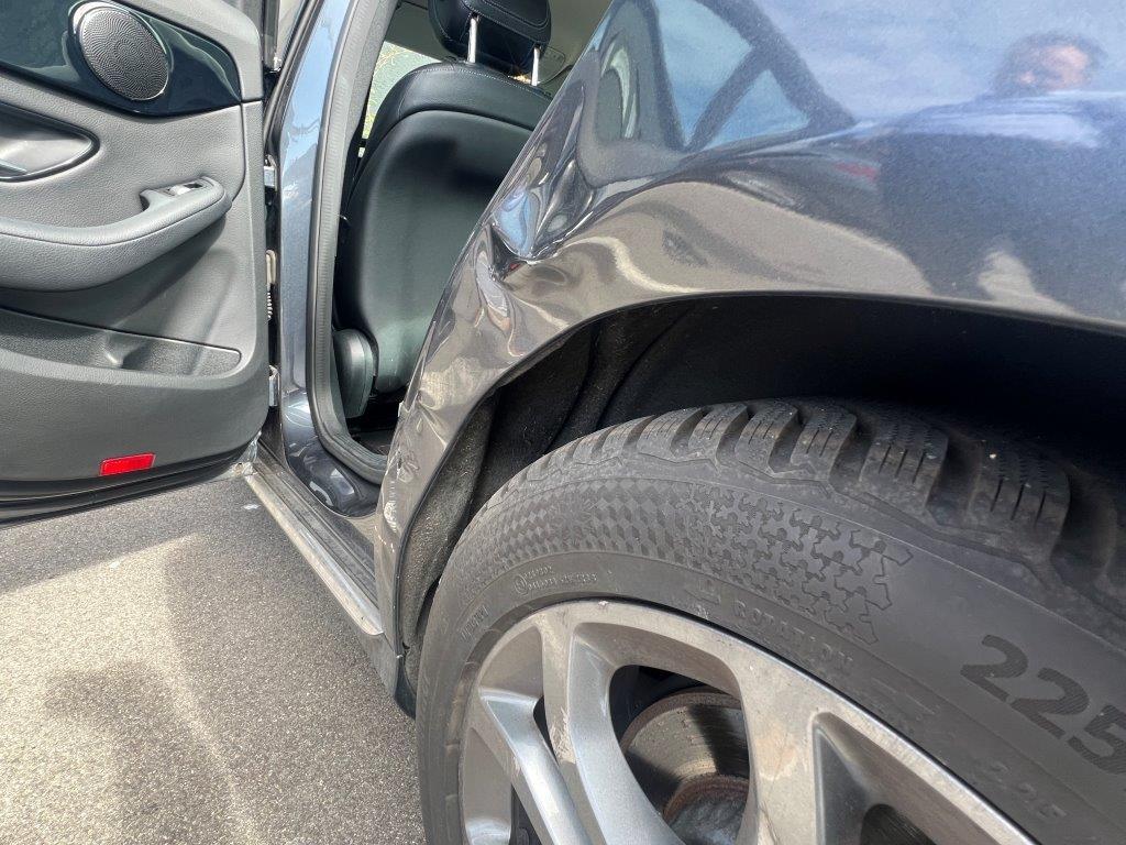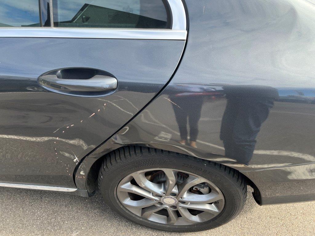 Anprall linke Seite: Dabei wurde die hintere Türe, die Seitenwand und die Radaufhängung beschädigt. / Vorschäden: Gebrauchsspuren