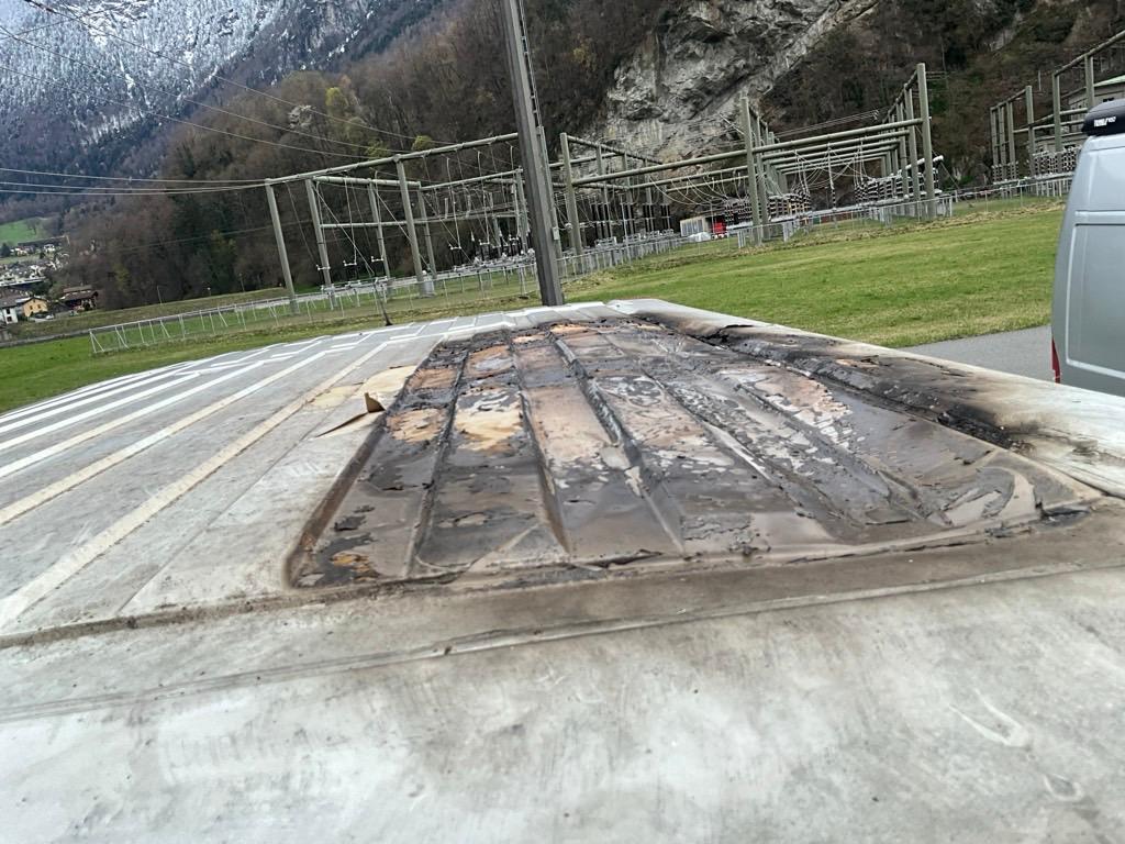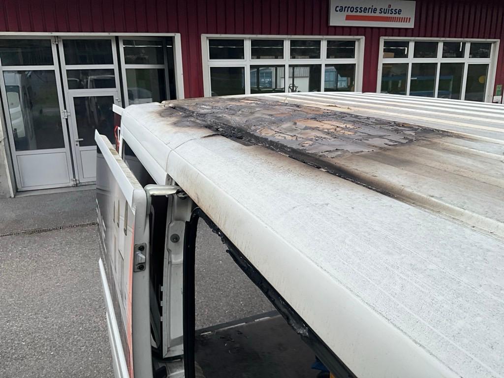 Beschreibung der Schäden: Incendie. Compartiment de charge et toit, endommagés. Vorbestandene Schäden: