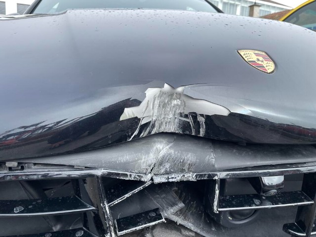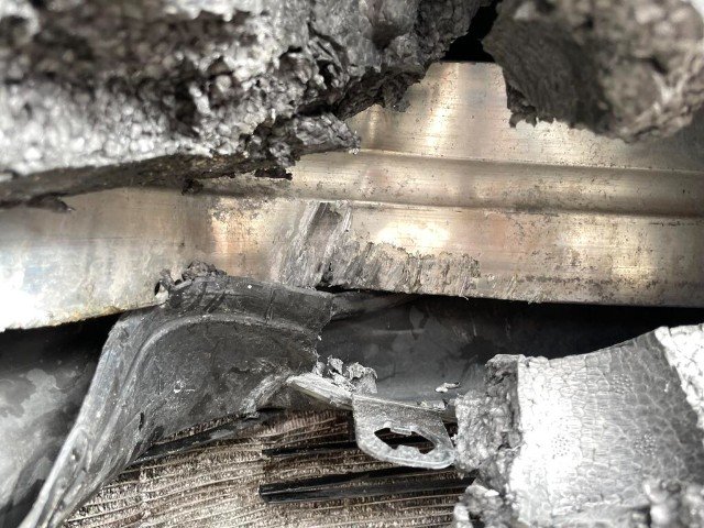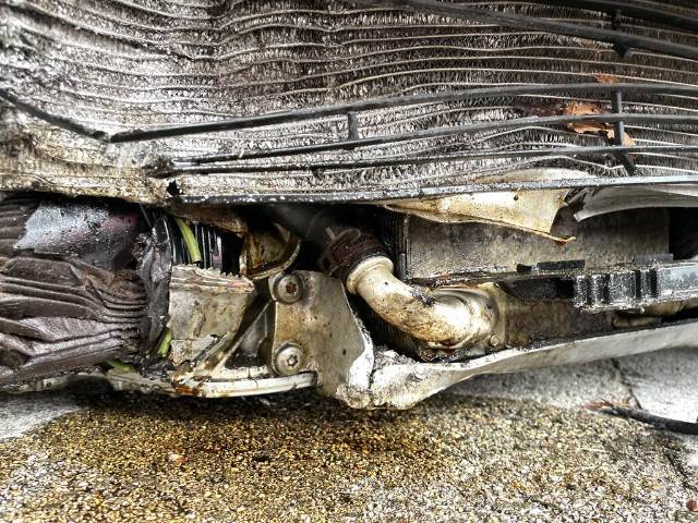 Aufhängungsteile vorne rechts beschädigt. Risiko Lenkung.