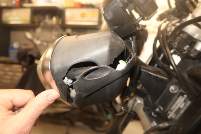 Lenkschloss, Schlüsselschalter, Rahmen, Lenker, Scheinwerfer sind beschädigt.