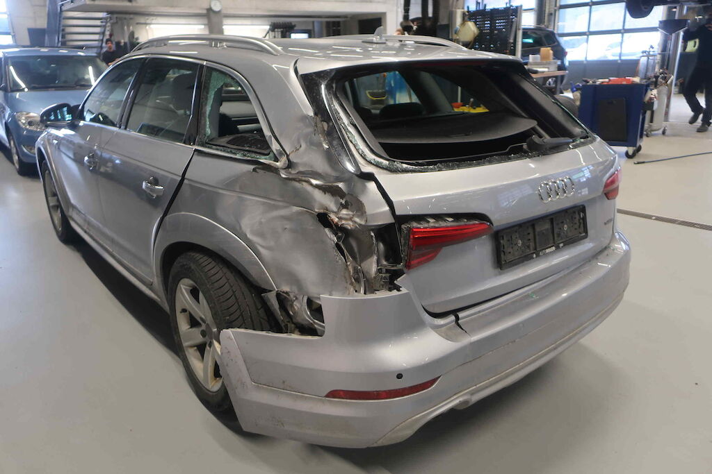 Mot.Haueb,Fussgängerschutz vorne, Türe hinten links,Seitenwand h links,Koffeboden,Heckblech,Heckklappe,Seitenscheibe hi links und Scheibe der Heckklappe beschädigt,Auspuffanlage beschädigt, D Säule eingedrückt,Offensichtlicher Totalschaden Motor Getriebe Vorderachse Hinterachse Airbags ausgelöst: 0 unbekannt ( Abfallcode 16.01.04ak )