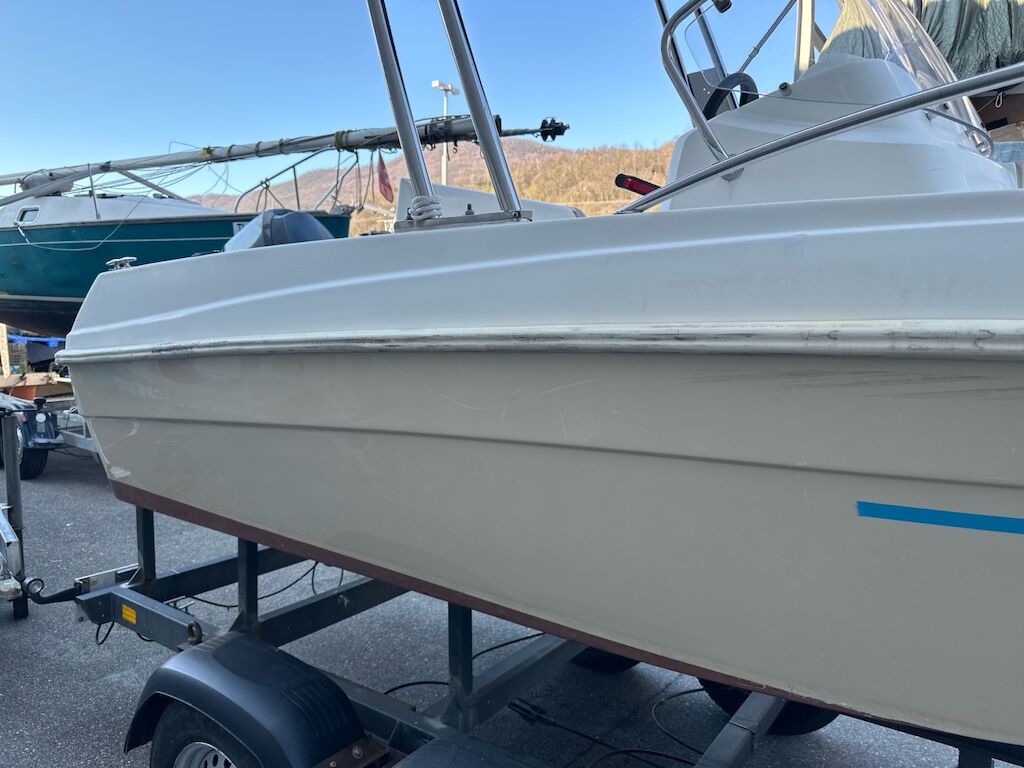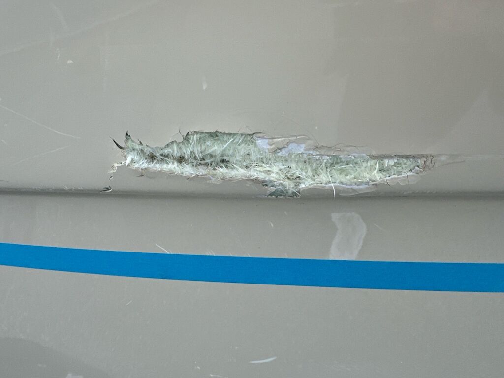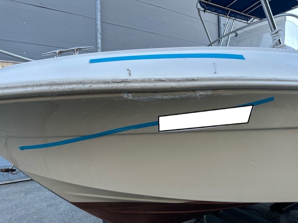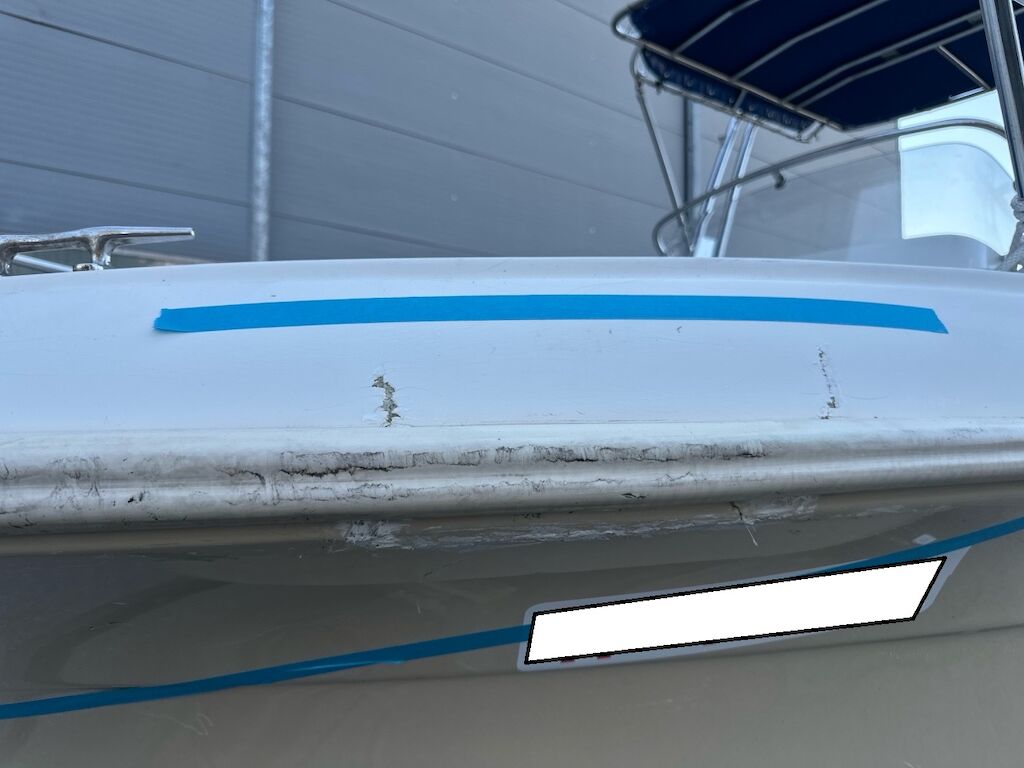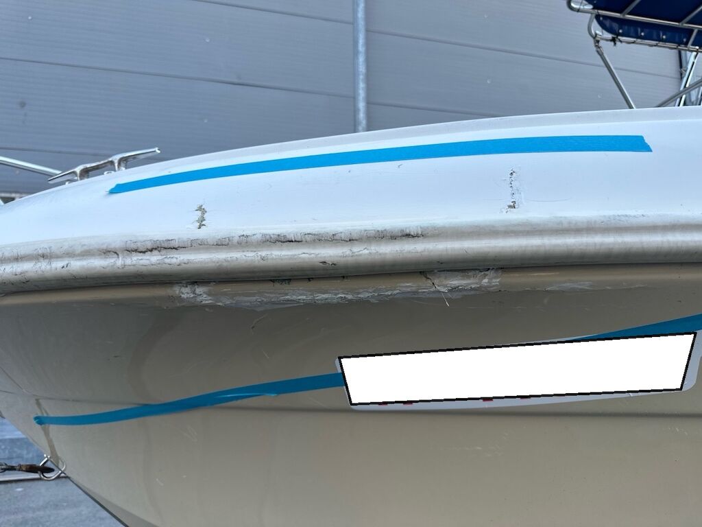 Scafo con diversi danni anche vecchi, bolle di osmosi presenti, vedi foto.Possibile che i parabordi interni non vengano consegnati con la barca.