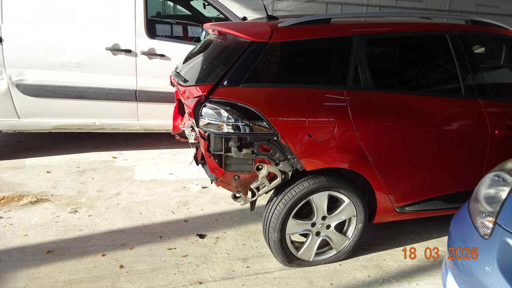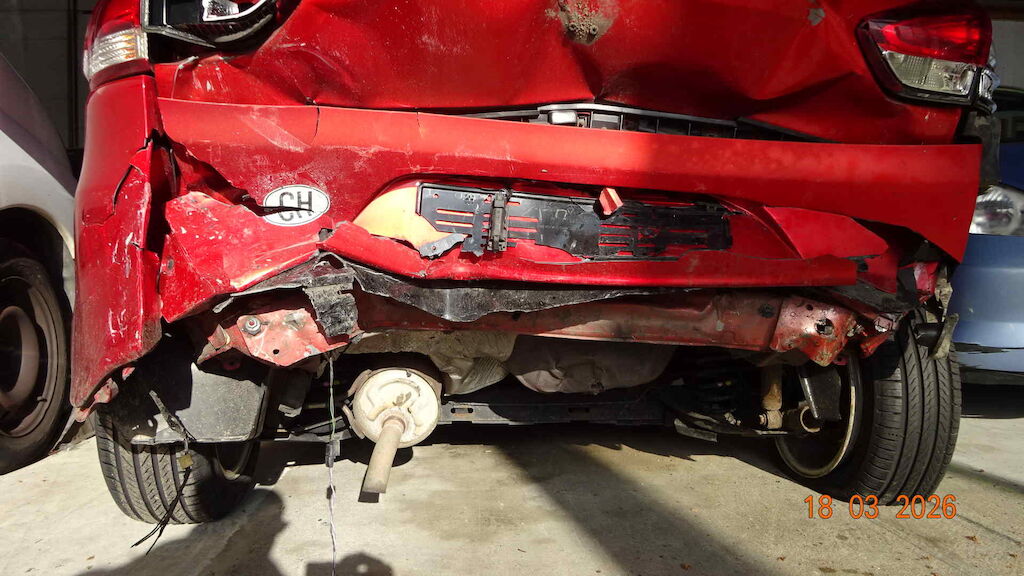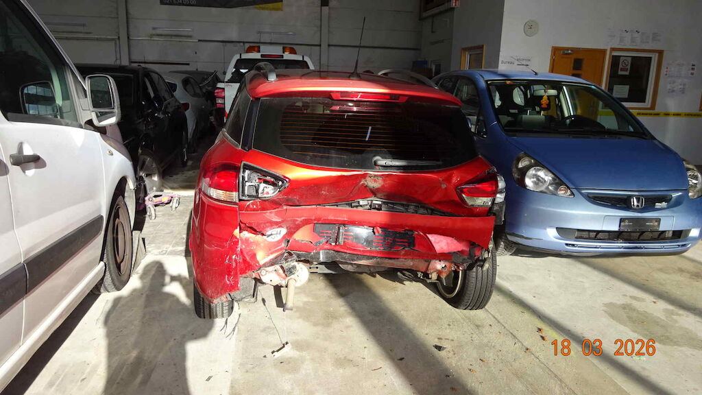 Pare-choc, renfort, jupe, plancher coffre, échappement, hayon, aile gauche et droite à l'arrière - Pare-choc, calandre, capot, phare et aile à l'avant droite Motor Getriebe Vorderachse Hinterachse Airbags ausgelöst: 0 unbekannt ( Abfallcode 16.01.04ak )