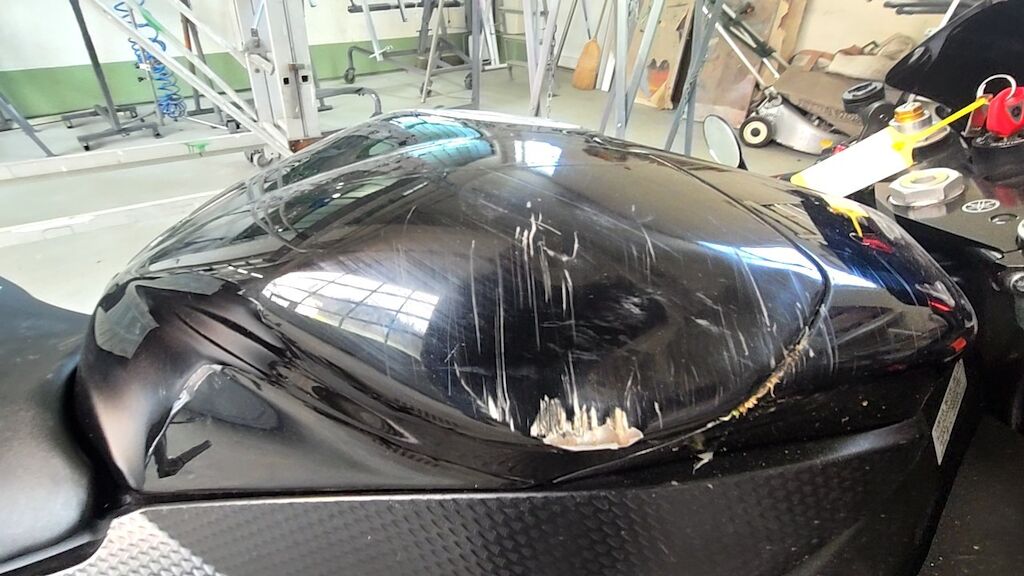 Rechte Seite zerkratzt, Diverse Verschalungen, Bremshebel, Blinker, Lenkergriff rechts, Gashebel, Lenker mit Lager, Fussrasten, Auspuff, Sitze, Scheinwerfer, Getriebedeckel, Tank Scheinwerfer, Rahmen, usw. zerkratzt und gerissen. Motor startet nicht. Motor Getriebe Vorderachse Hinterachse Airbags ausgelöst: 0 unbekannt ( Abfallcode 16.01.04ak )