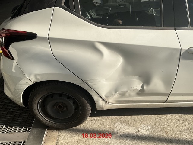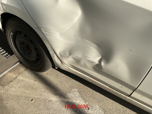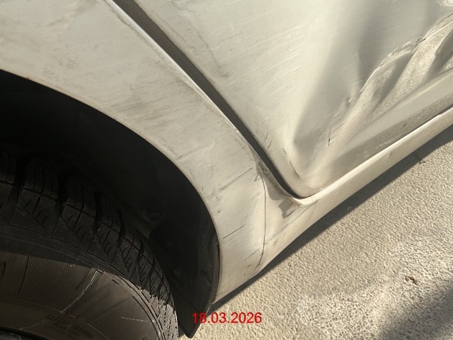 Schaden hinten rechts : Türe, Seitenwand Kniestück eingedrückt und zerkratzt, Stossfänger zerkratzt / Vorbestandene Schäden: Gebrauchsspuren