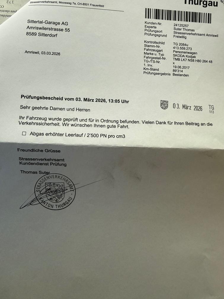 Dieselpartikelfiltertest wurde erfolgreich durchgeführt (Schriftlicher Ausdruck ist vorhanden).