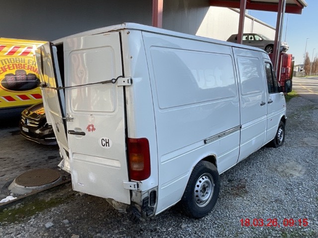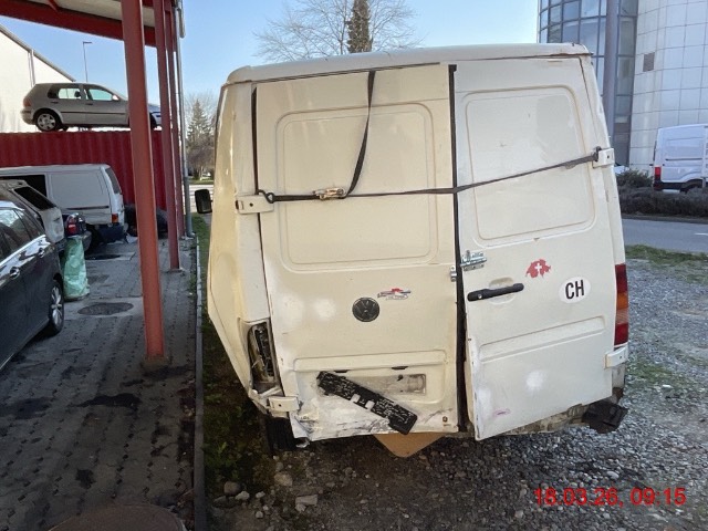 Heck links stark eingedrückt, Seitenwand links gestaucht, Schiebetür links gestaucht, Chassis hinten geknickt, Hinterachse verzogen, Reifen vorne rechts und hinten links beschädigt. Aufzählung nicht abschliessend / Vorbestandene Schäden: gem. Fotos