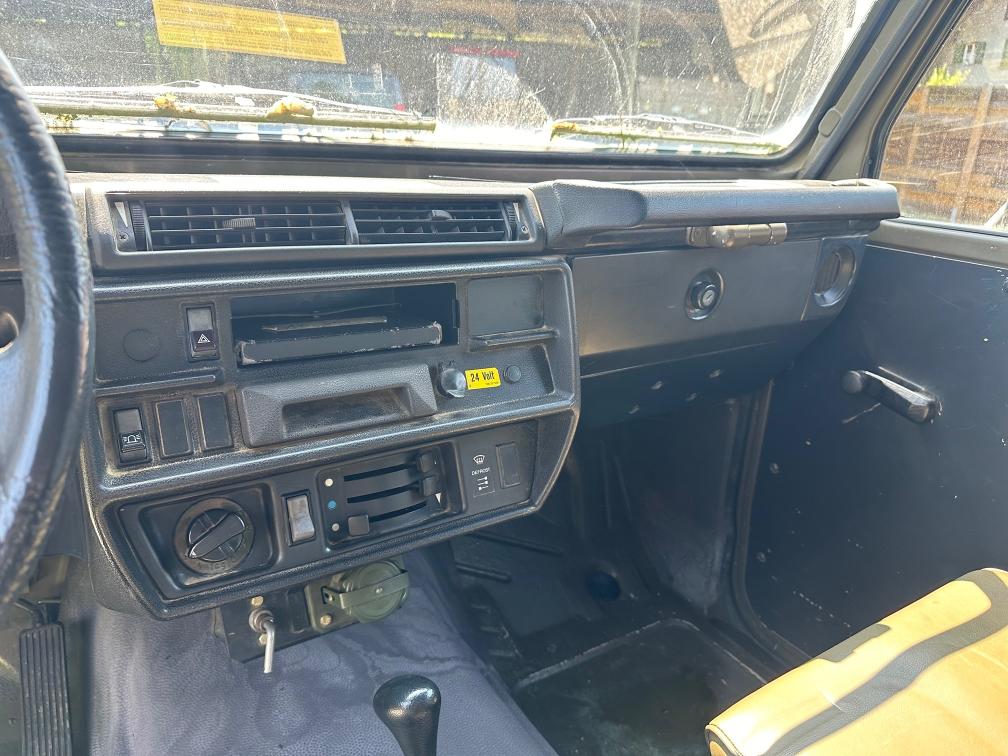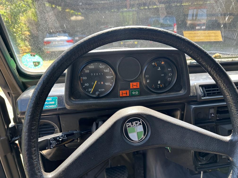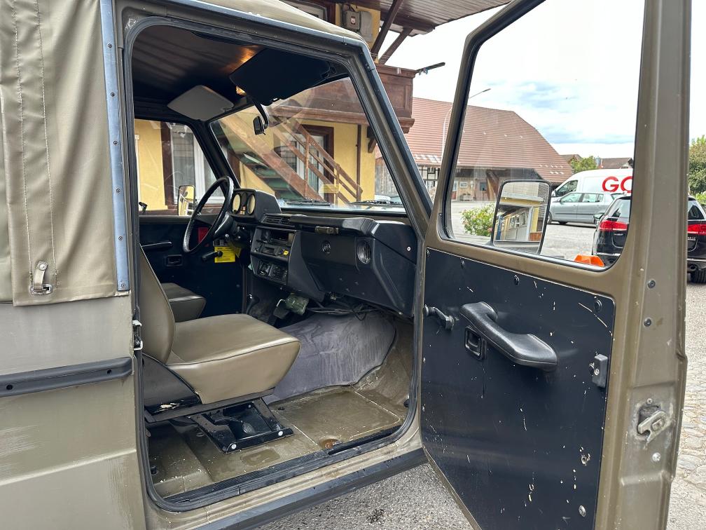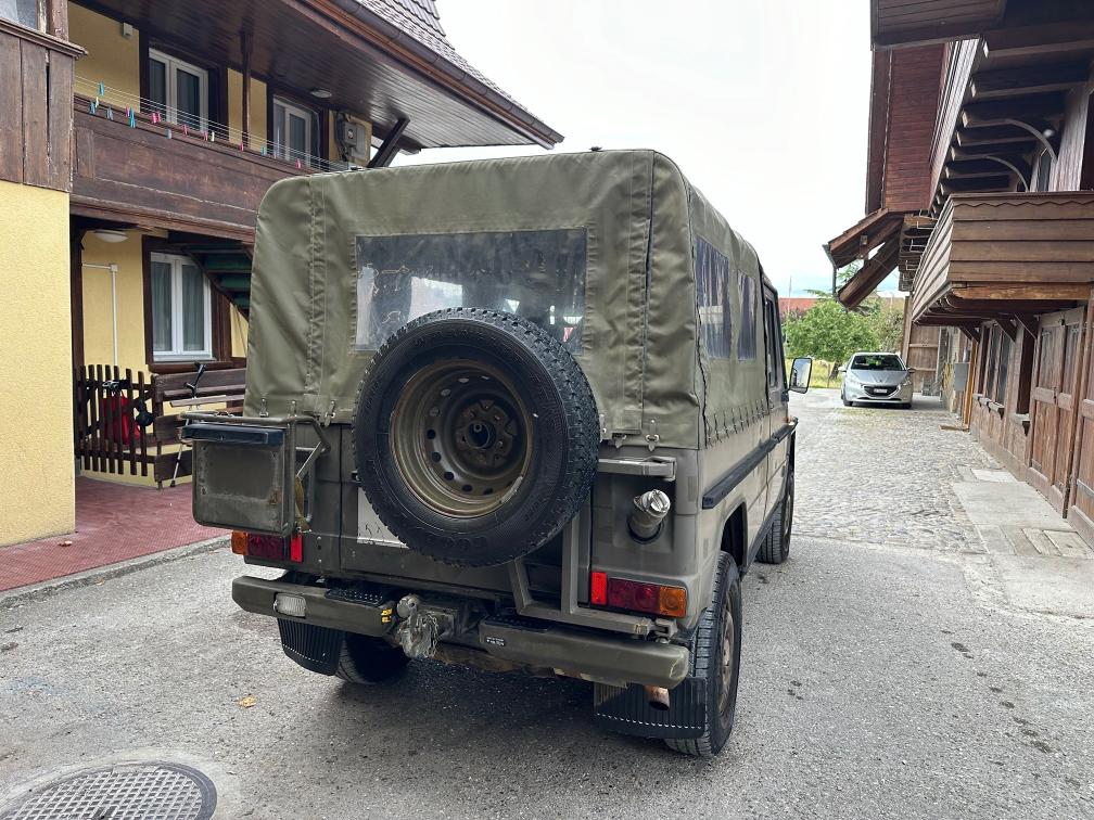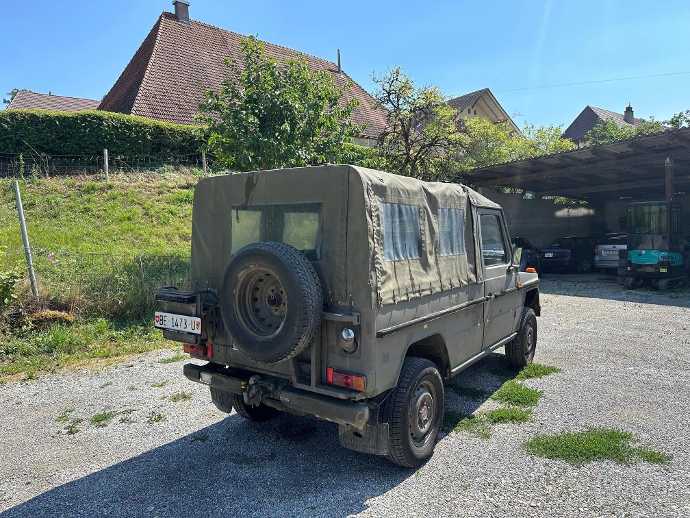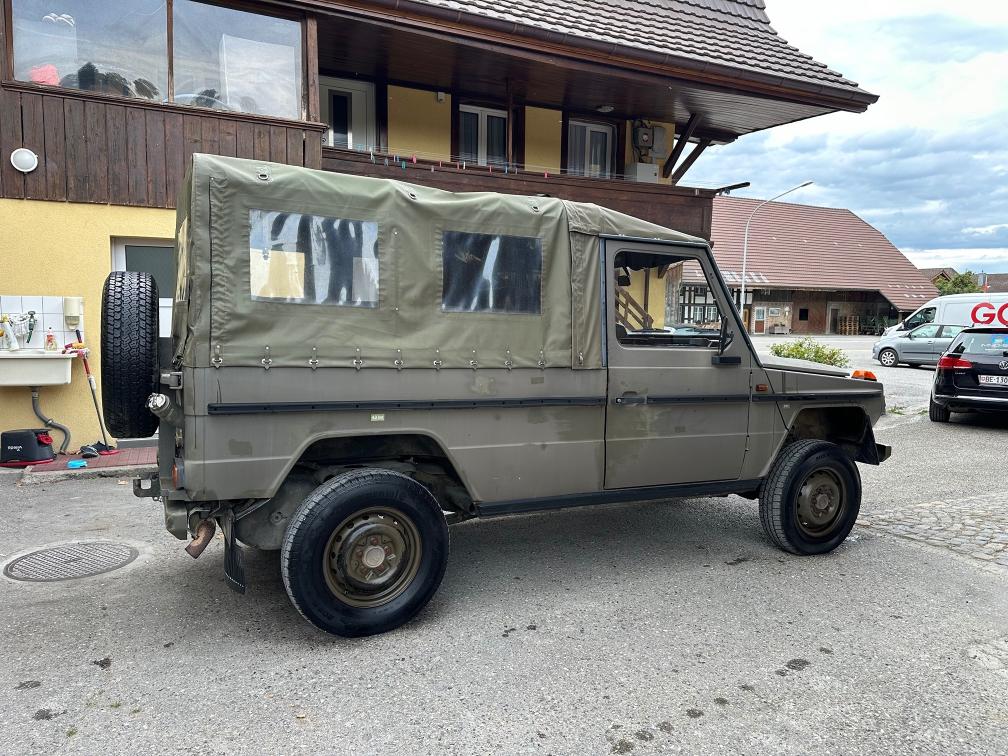 Zum Verkauf steht ein Puch 230 GE. Vor rund einem Jahr wurde eine technische Kontrolle durchgeführt. Dabei wurde festgestellt, dass die Starterbatterien nicht mehr in gutem Zustand sind. Zudem wird die vordere rechte Bremszange nach ca. 10–15 Kilometern heiss. Das Fahrzeug ist jedoch fahrbar und funktioniert grundsätzlich ohne Probleme. Die Kilometeranzeige zeigt aktuell ca. 2’000 km an. Es wird jedoch vermutet, dass der Zähler bereits einmal überdreht hat und die effektive Laufleistung bei etwa 102’000 km liegen könnte. Eine Garantie für die tatsächliche Kilometerleistung kann nicht übernommen werden. Es ist kein grosser Rost bekannt. Weitere Mängel sind nicht bekannt. Aktuell wurde keine neue technische Kontrolle durchgeführt. Das Fahrzeug wird ab Platz und ohne Garantie verkauft. Eine Besichtigung vor Ort ist gerne möglich. Das Fahrzeug muss innerhalb von 10 Arbeitstagen abgeholt werden. Danach fallen Standgebühren von CHF 50.– pro Tag an.