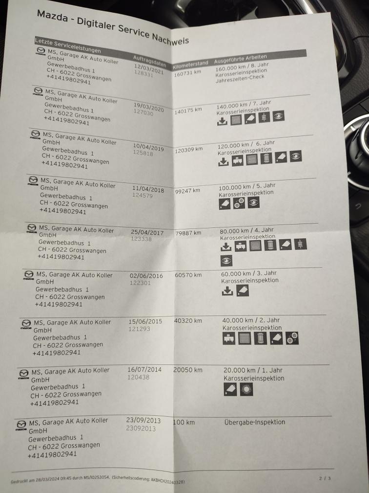 Sehr gepflegt aussen wie Innen Zwei mal Jaehrlich Oel wechsel gemacht Letzter Oelwechsel 16.12.2025 bei 239500km Automat schaltet einwandfrei Sommerräder sind Original Mazda Winterräder Beiblatt vorhanden