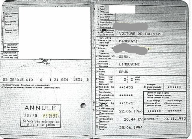 1. Fahrzeug MASERATI MISTRAL Matching-Number-Fahrzeug ca. CHF 90'000.00 Fahrzeugwert / Klasse 3 abzügl. ca. CHF 46'000.00 für Investitionen (Zahlen geschätzt, ohne Gewähr)