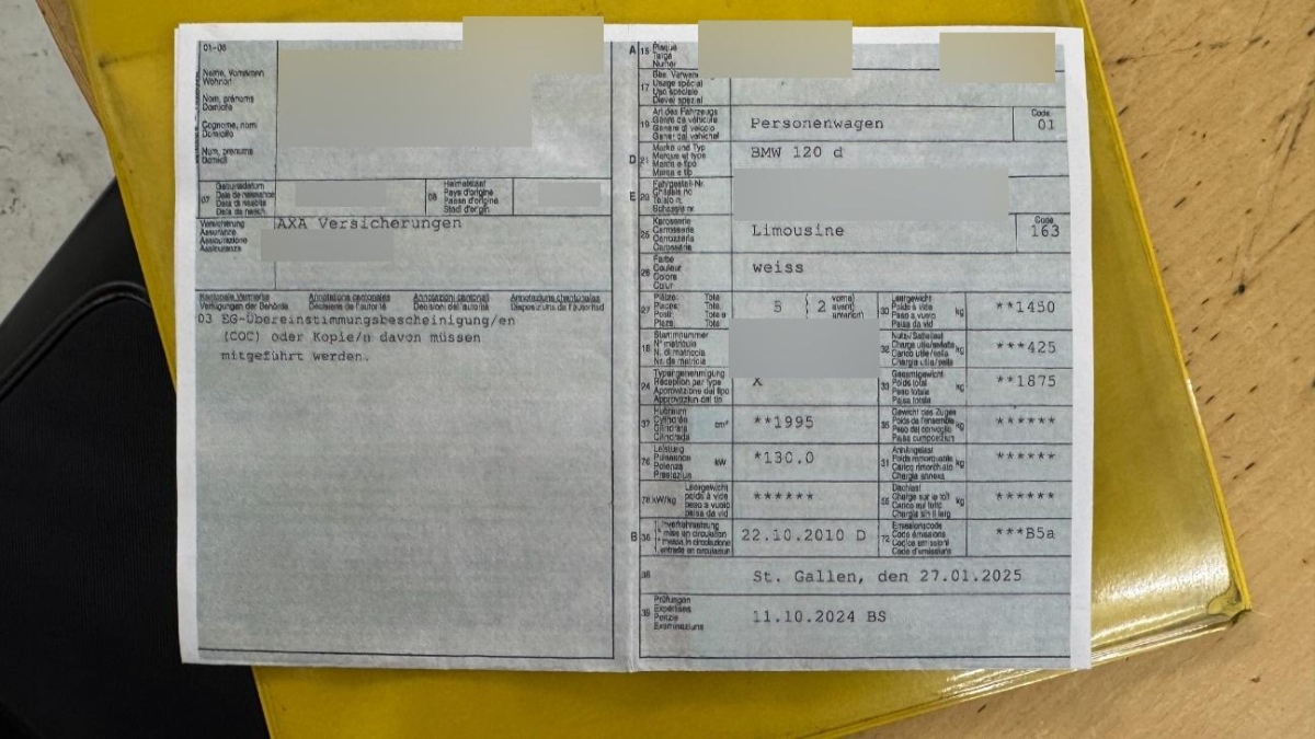 Schutzleisten für Stossstangen vorne und hinten, Zweiklanghorn, Oelstandsanzeige, Lenkrad: Lenkrad längs- und höhenverstellbar, Reifendruckverlust-Warnsystem, Lackierung: Uni-Lackierung, Getriebe: 6-Gang-Getriebe, Kombi-Instrumente mit Chromzierringen, Wartungsintervall-Anzeige, Abblendlichtausschaltverzögerung 'Follow me home', Innenlicht-Abschaltverzögerung, Beleuchtetes Handschuhfach, 12-Volt-Steckdose vorne, Lichtwarnsummer, Dynamische Stabilitätskontrolle (DSC), ISOFIX Kindersitzvorrichtung, Radzierblenden, Blinkleuchten seitlich vorn weiss, Scheibenwischer vorne mit Intervall, 3 Kopfstützen hinten, Lenkung, elektrisch unterstützt, Nebelscheinwerfer, Kofferraumfernentriegelung, Nichtraucherausführung, Heckscheiben-Wisch-/Waschanlage, Aux-In Anschluss, Tageskilometerzähler, Radiovorbereitung, Antenne, Entstörung und 6 LS, Airbag: Airbag Fahrer und Beifahrer, Aussenspiegel rechts und links elektrisch verstellbar, Licht: Nebelschlussleuchte, Drittes Bremslicht, Digital Uhr, Befestigungsösen im Laderaum, Seitenairbags, Stossstangen und Aussenspiegel in Wagenfarbe, Verbandskasten, iDrive-System, Make up-Spiegel links, Durchladeklappe, Partikelfilter und Oxydationskatalysator, Halogenscheinwerfer, Assist: Cornering Brake Control (CBC), 3-Punkt-Sicherheitsgurte auf allen Plätzen, Automatische Stabilitäts- und Traktions- kontrolle, BMW Mobility System, Heckscheibenheizung, Weisse Blinkleuchten, Veloursfussmatten vorne und hinten, Einstiegsschienen, Tagfahrlicht, Türgriffe in Wagenfarbe, Rücksitzlehne geteilt abklappbar, Bordcomputer, Stahlräder, Elektrische Fensterheber vorne + hinten, Check-Control-System, Zentralverriegelung mit Fernbedienung, Stoff-Ausstattung, Motor Start-/Stop-Anlage, Bremsbelag-Verschleissanzeige, Radio BMW Business CD, Bremsassistent (BAS), Gurtstraffer vorne, Anbauteile in Wagenfarbe, Antiblockiersystem (ABS), Aussentemperaturanzeige, Skisack, Window-Kopfairbags, Abschliessbare Radschrauben, Seitenaufprall-Schutzsystem, Dekor: Interieurleisten in Satinsilber matt, Gurtkontrolle, Drehzahlmesser, Grün getönte Scheiben, Leuchtweitenregulierung elektrisch, Make up-Spiegel rechts, Vordersitze höhenverstellbar, Wegfahrsperre elektronisch